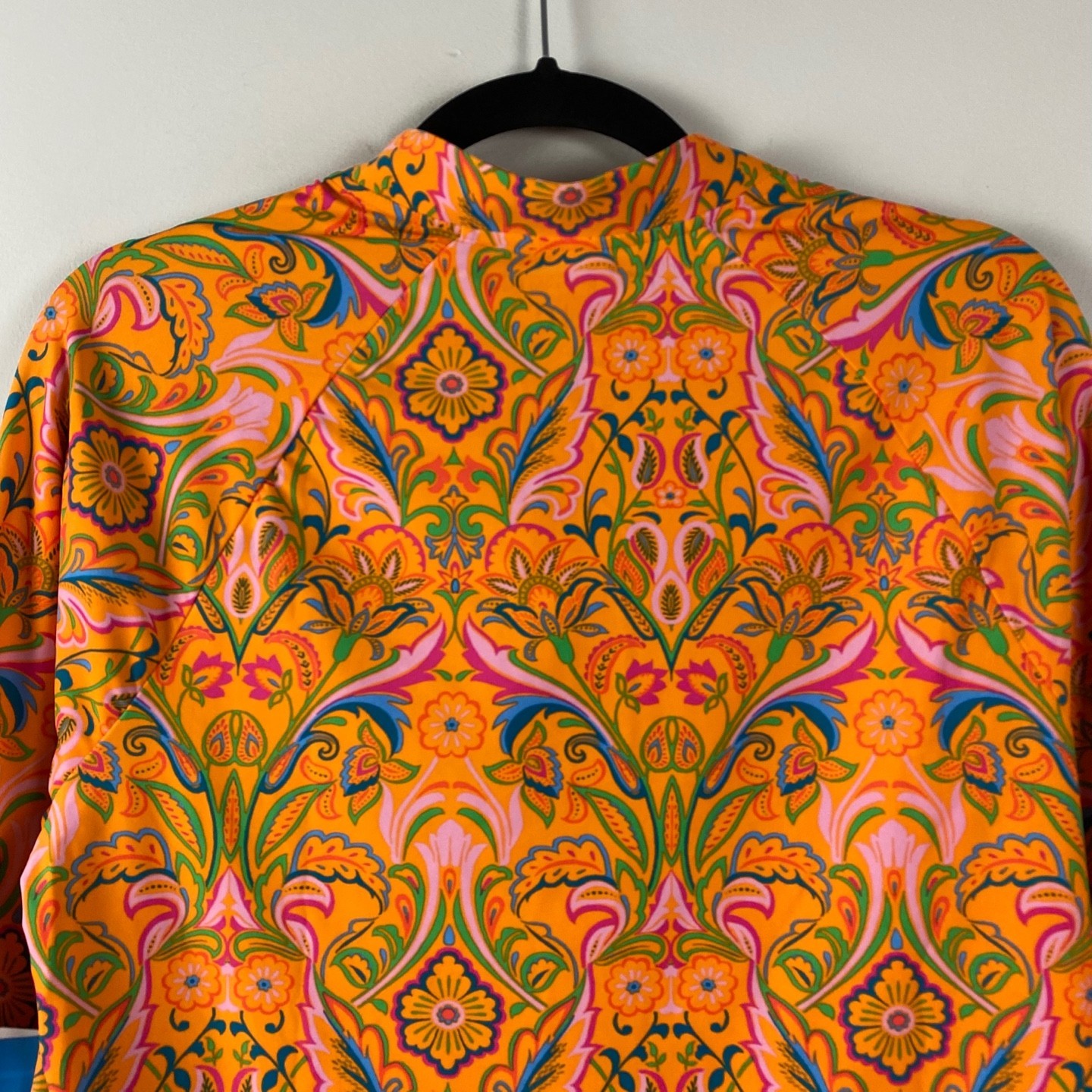 как выглядит Coolibar Bal Harbour Zip Neck Rash Guard Womens Large Orange Floral UPF 50 фото