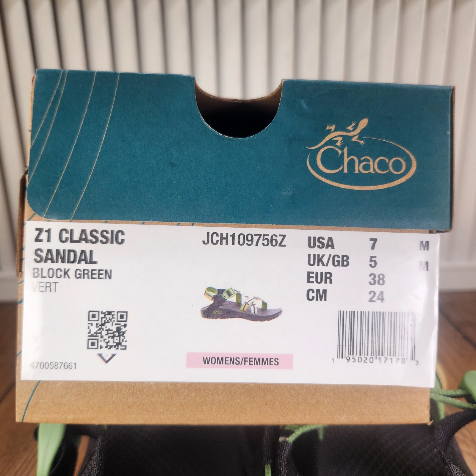 Chaco Z/1 Classic Block Green Women's Sz 7 Black Colorful Hiking Strappy Sandals