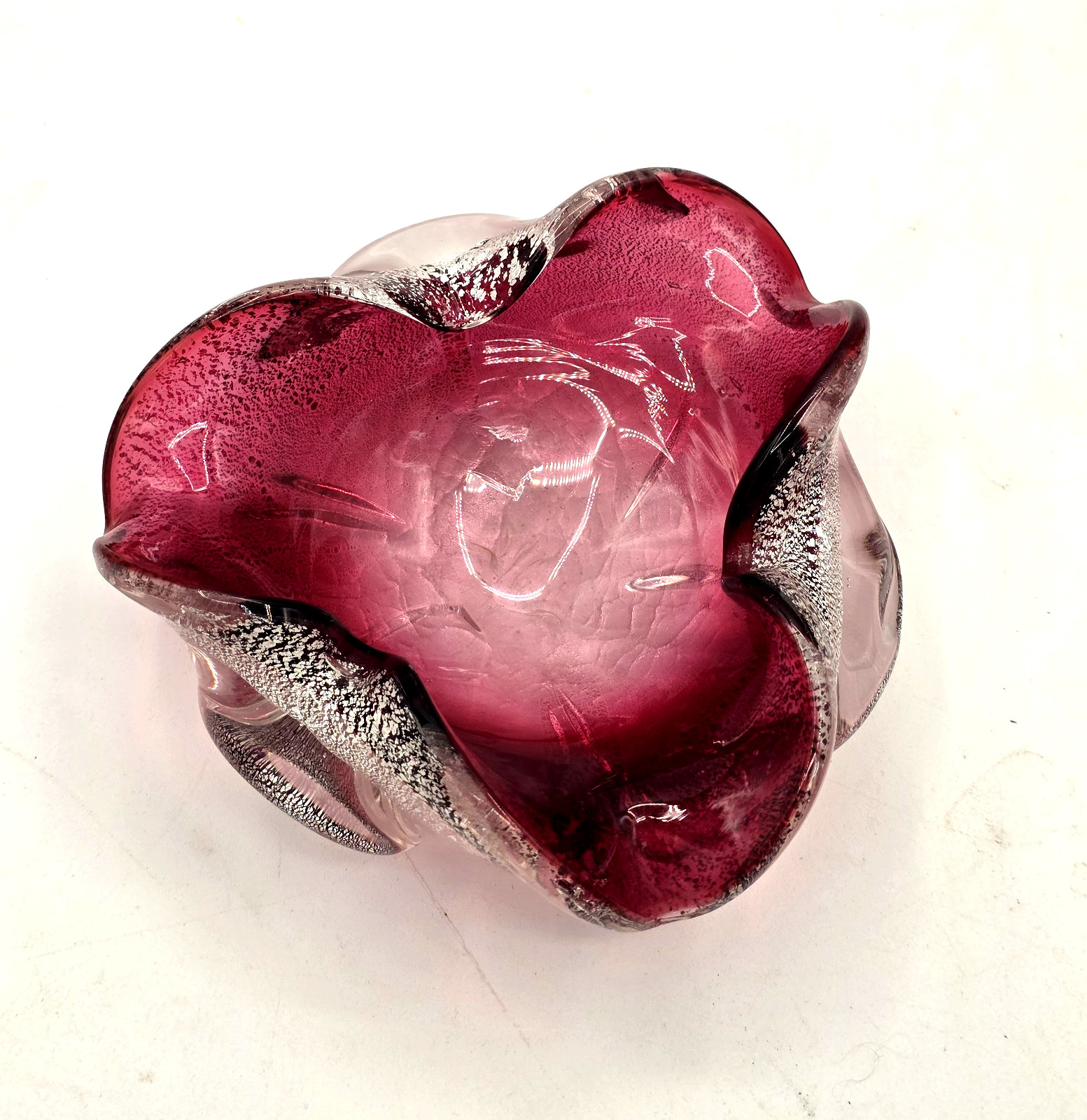 VTG Murano Blown Glass Cranberry Argento Ashtray
