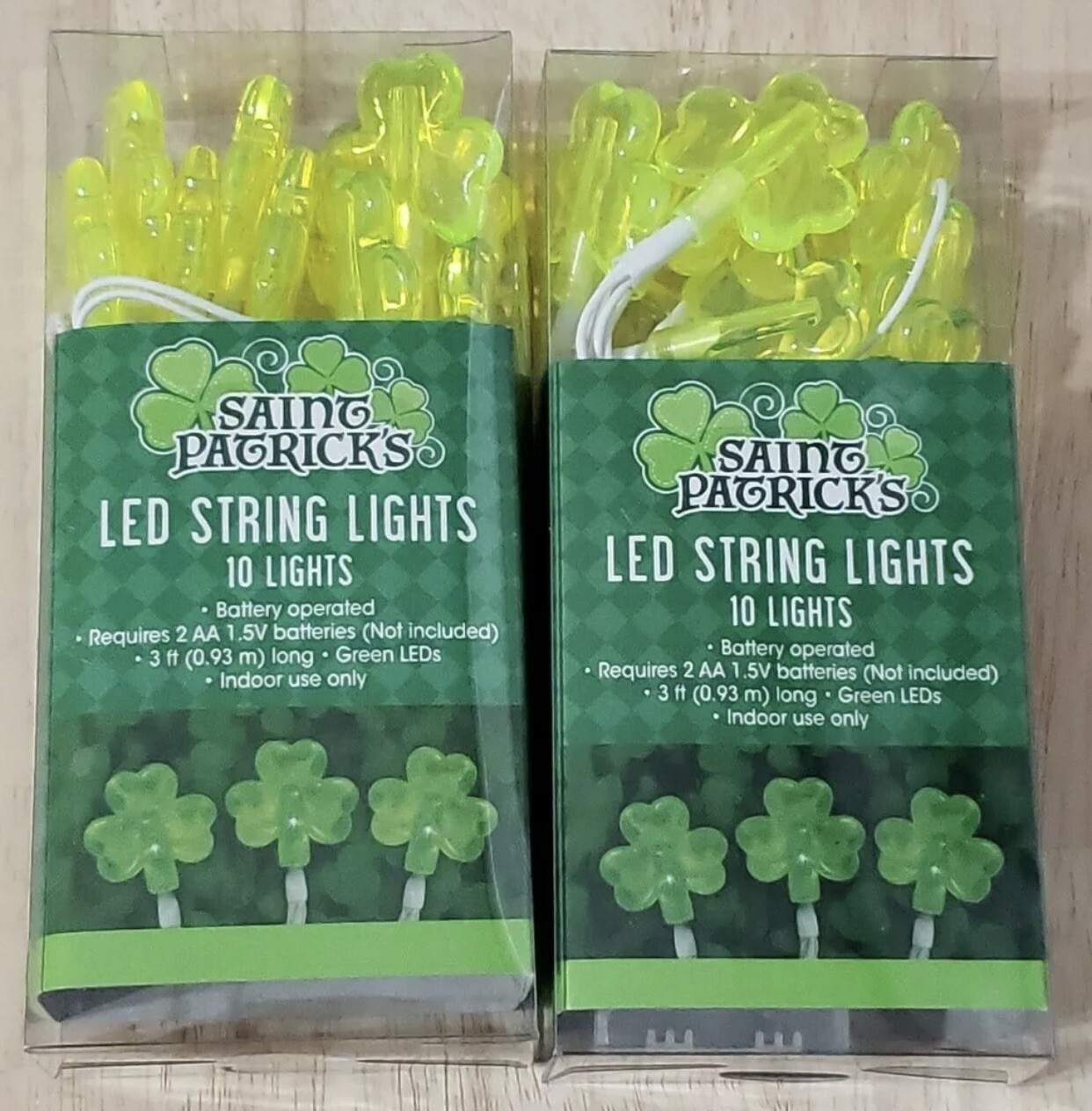 2 PACK St Patricks Day LED Light String Green Shamrocks Battery Operated