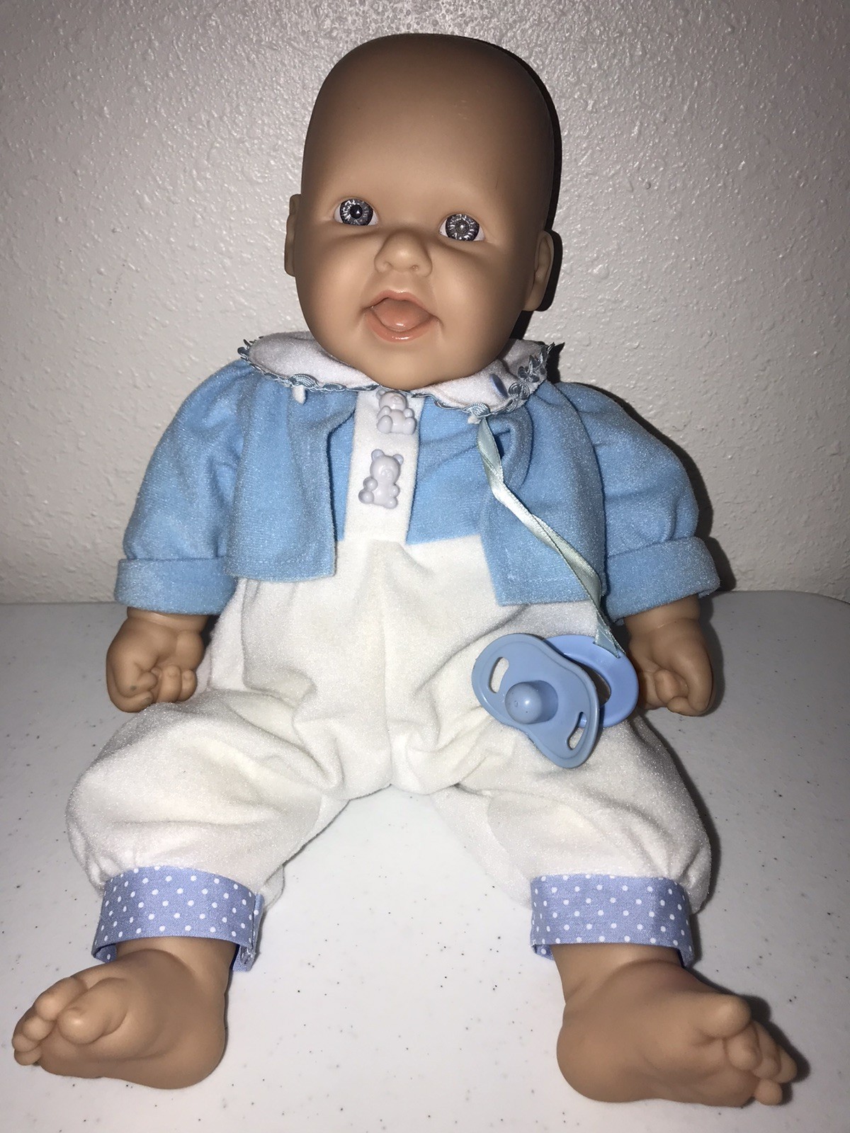 как выглядит 16 JC Toys Berenguer Baby Doll Cloth Vinyl Blue Gray Eyes Clinched Hands Smil фото