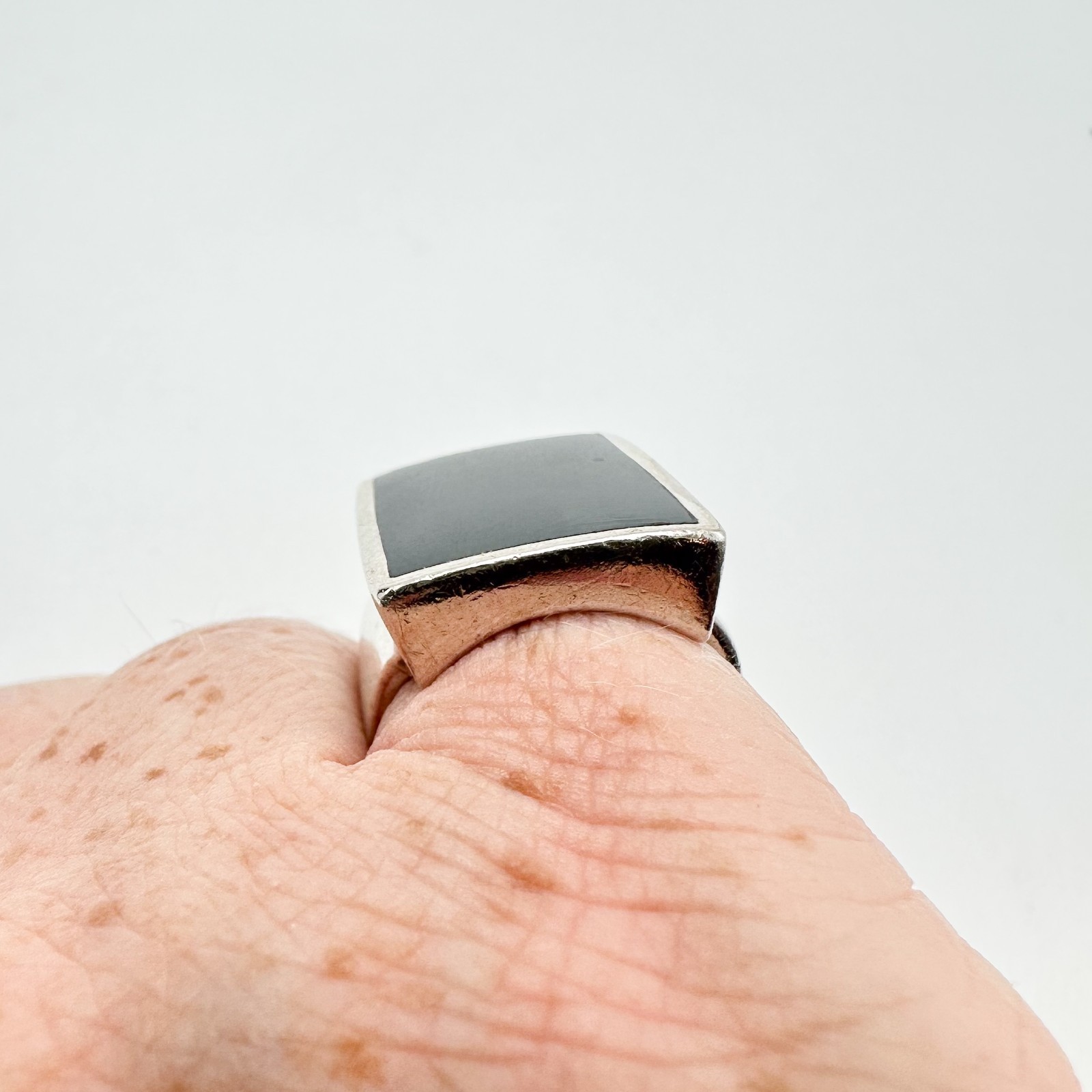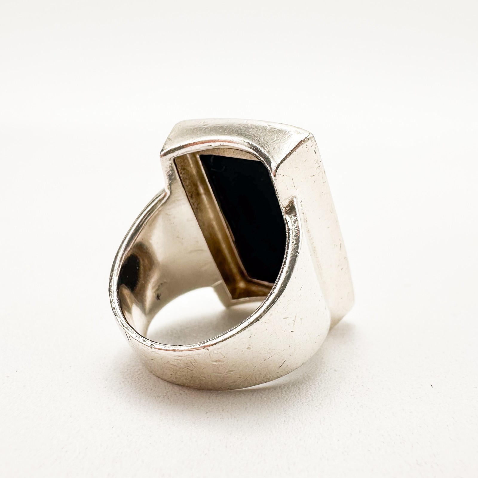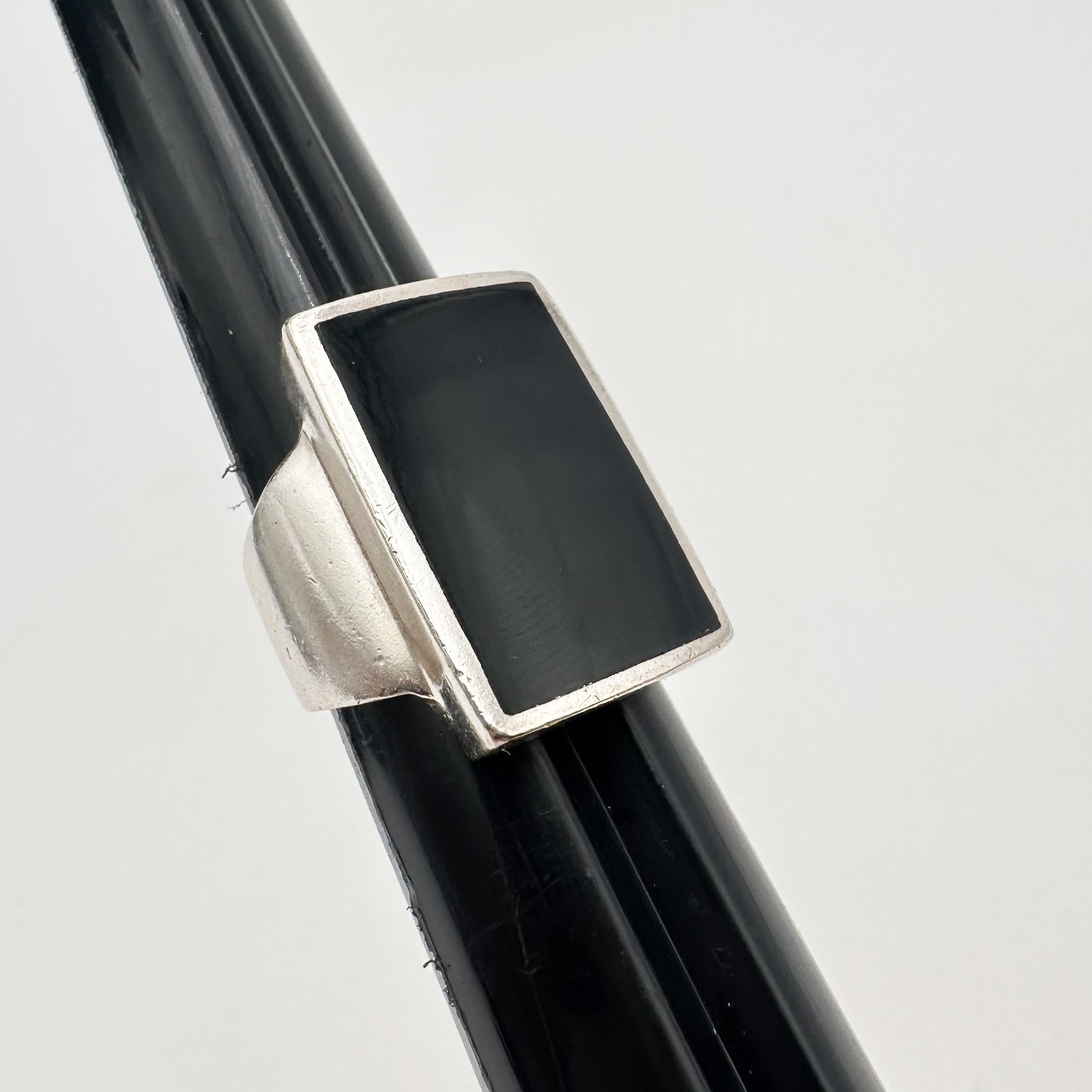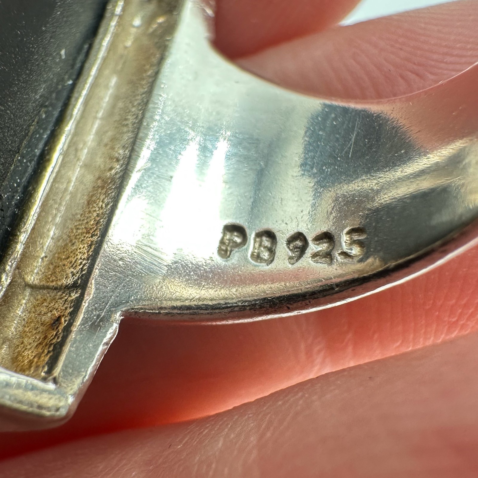 как выглядит Signed PB 925 Sterling Silver Framed Black Onyx Statement Ring 925 13G Sz 5.5 фото