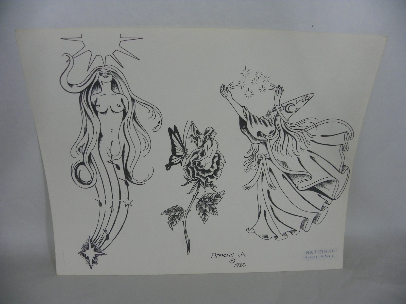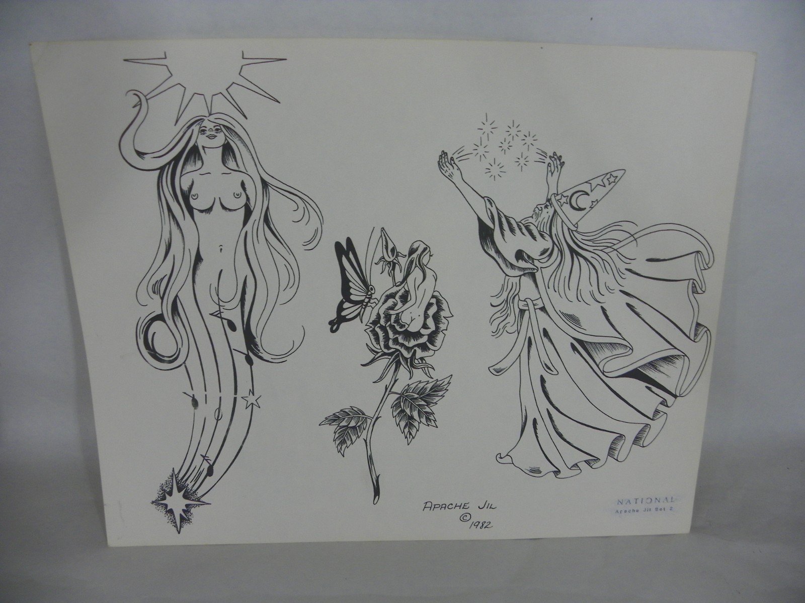 Vintage 1982 Apache Jil set 2 Wizard tattoo flash. Great condition.