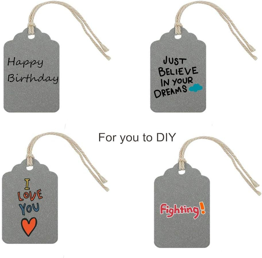 Paper Gift Tags with String - 7Cm X 4Cm Silver Craft Tags with Twine for Arts an