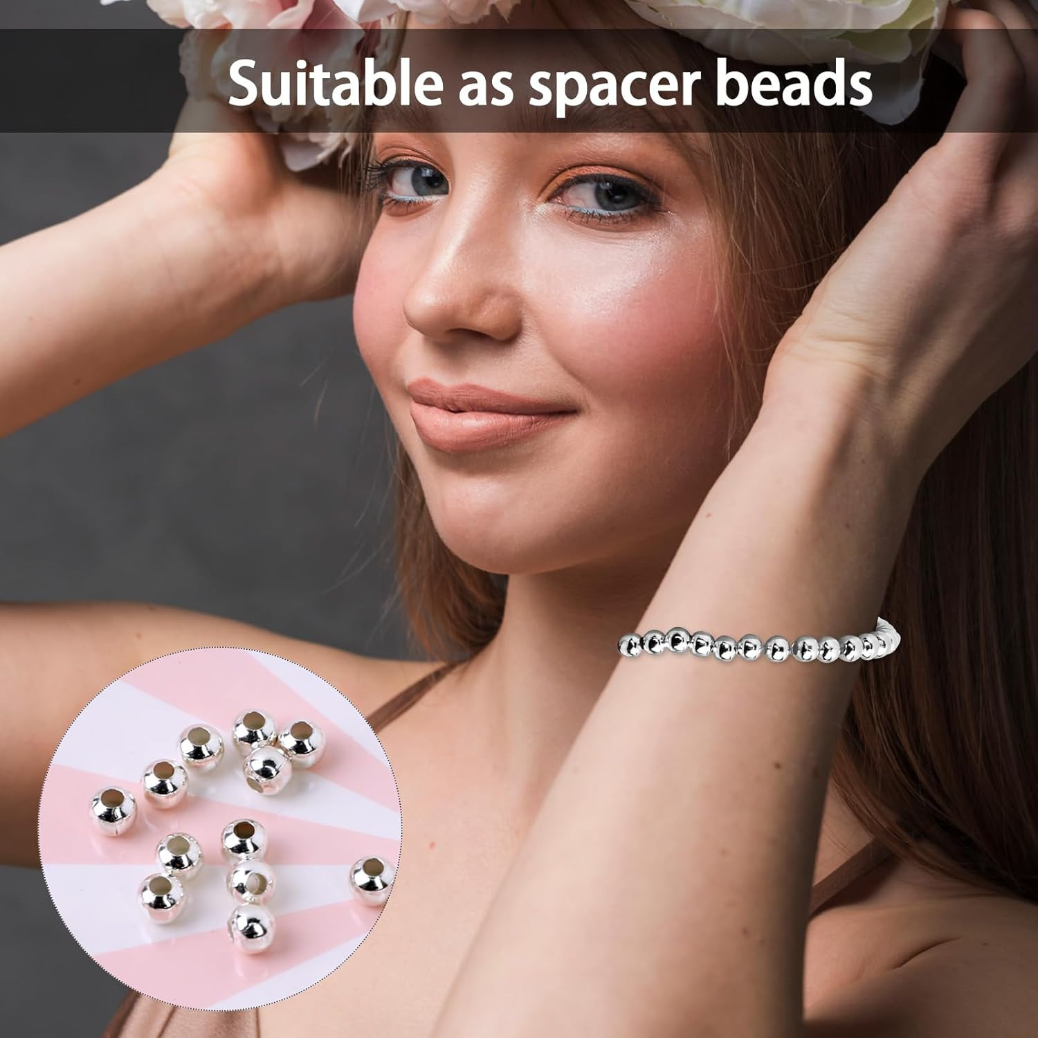 Silver Spacer Beads, 150 Pcs 8Mm round Smooth Spacer Beads for Jewelry Making Me