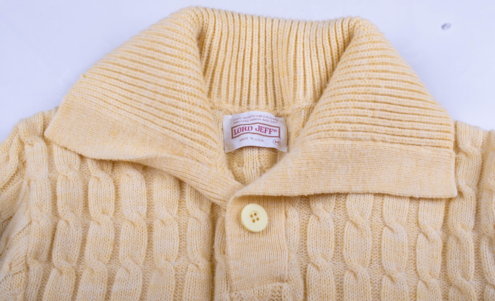 Vintage Lord Jeff Cable Knit Yellow/Blue Pattern Thick Sweater US Made Men's M/L