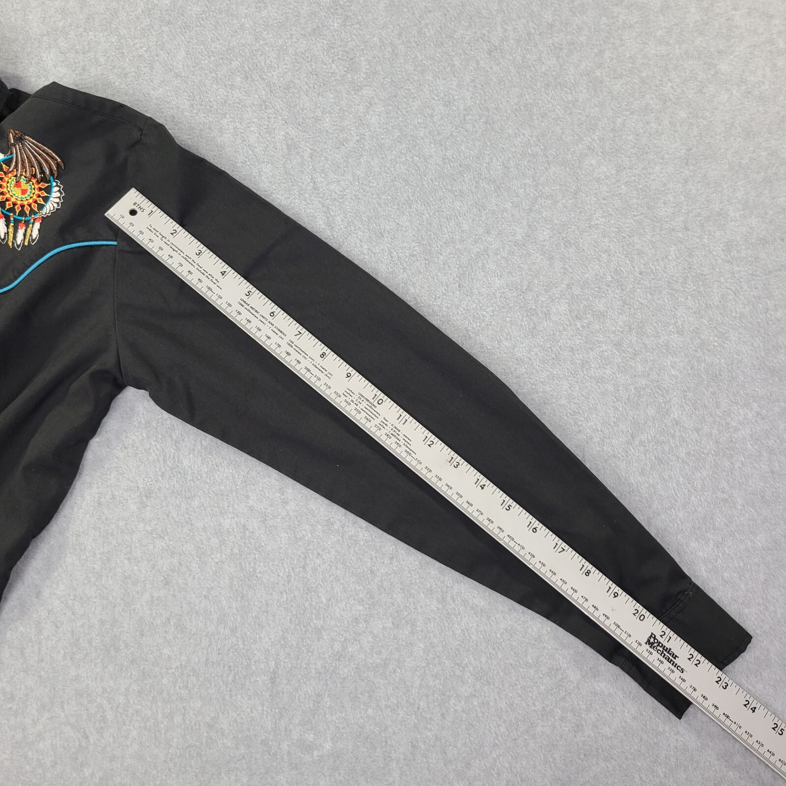 как выглядит Ely Country Charmers Western Shirt Womens Med Eagle Patches Black Pearl Snap USA фото