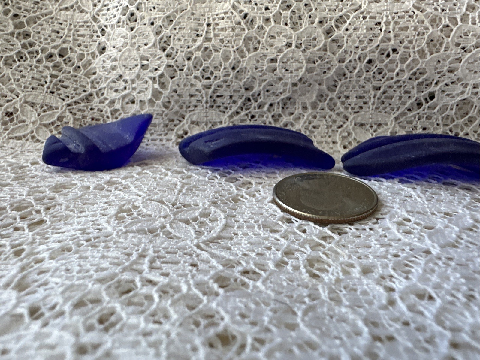 3 pieces extra thick dark cobalt blue glass Recycled tumbled bottle glass