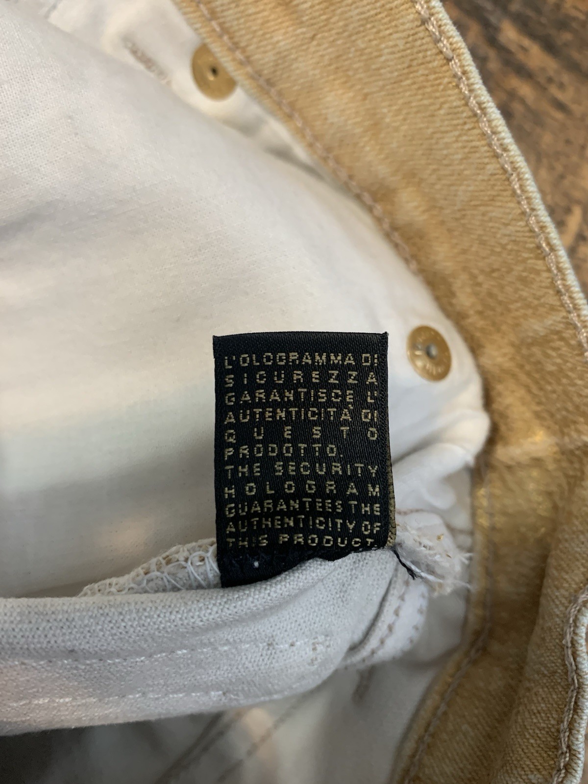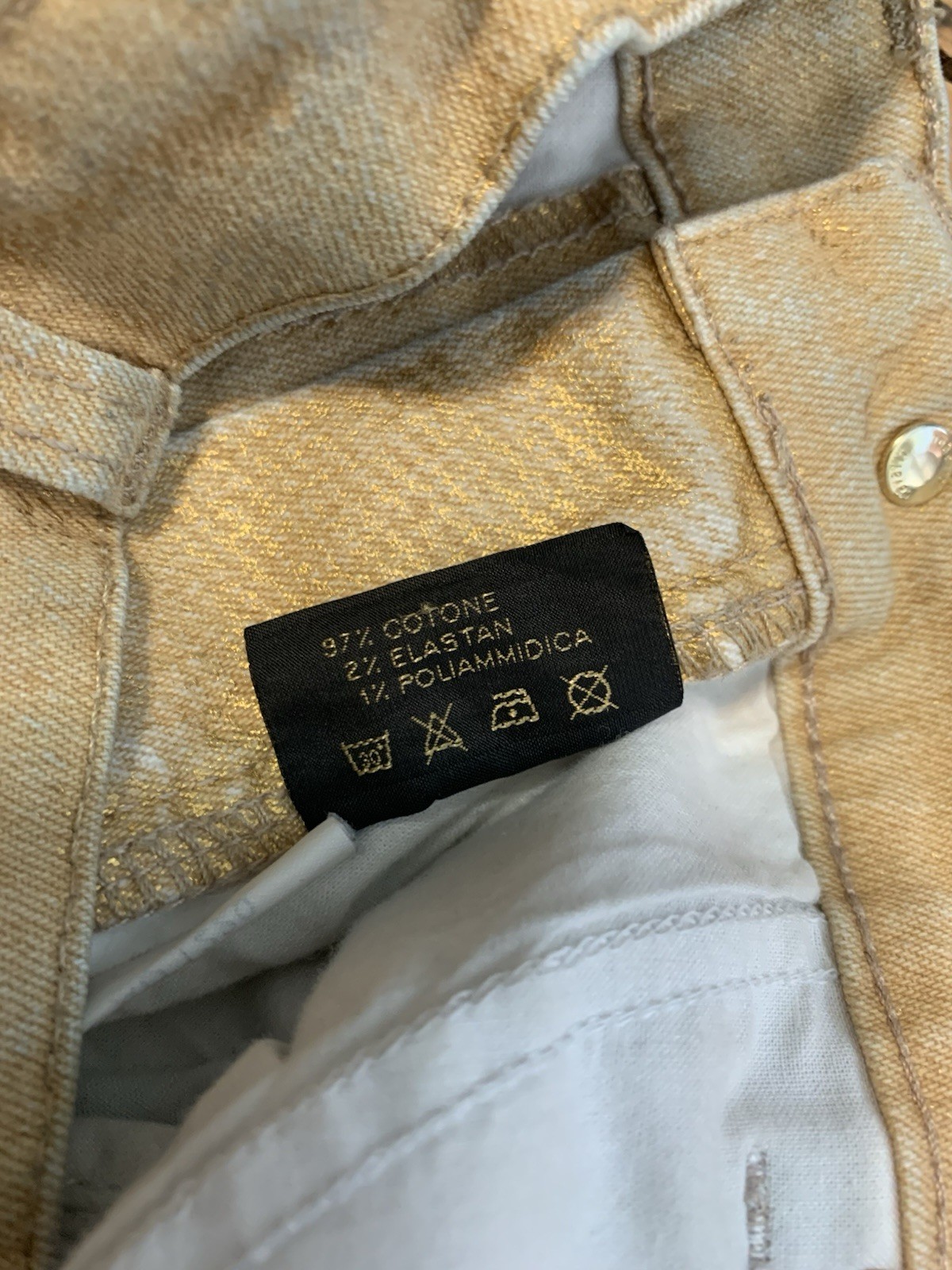 как выглядит Roberto Cavalli XS Gold Metallic Jeans Made In Italy 28.5 Inseam Raw Hem Vtg фото