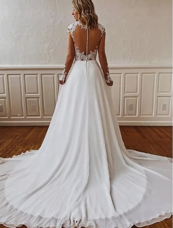 как выглядит Boho A-Line Wedding Dresses V-Neck Long Sleeves Lace Appliques Bridal Gowns фото