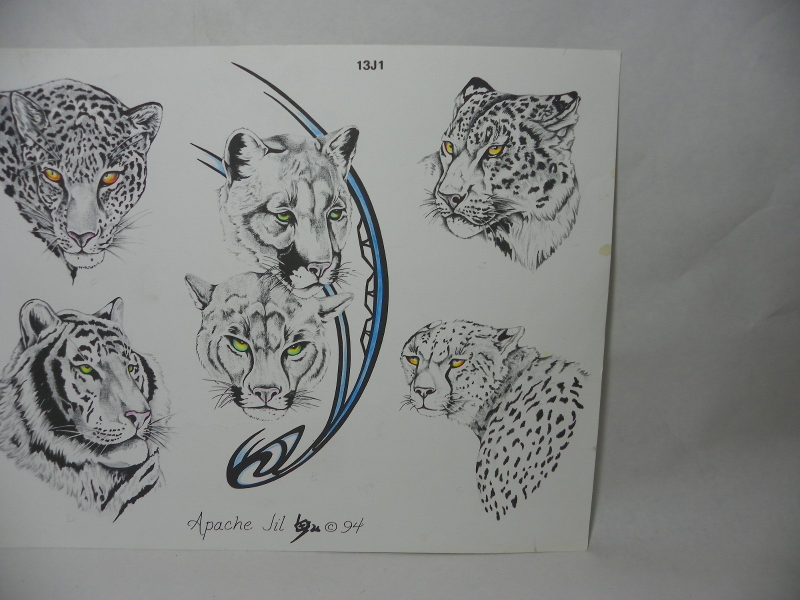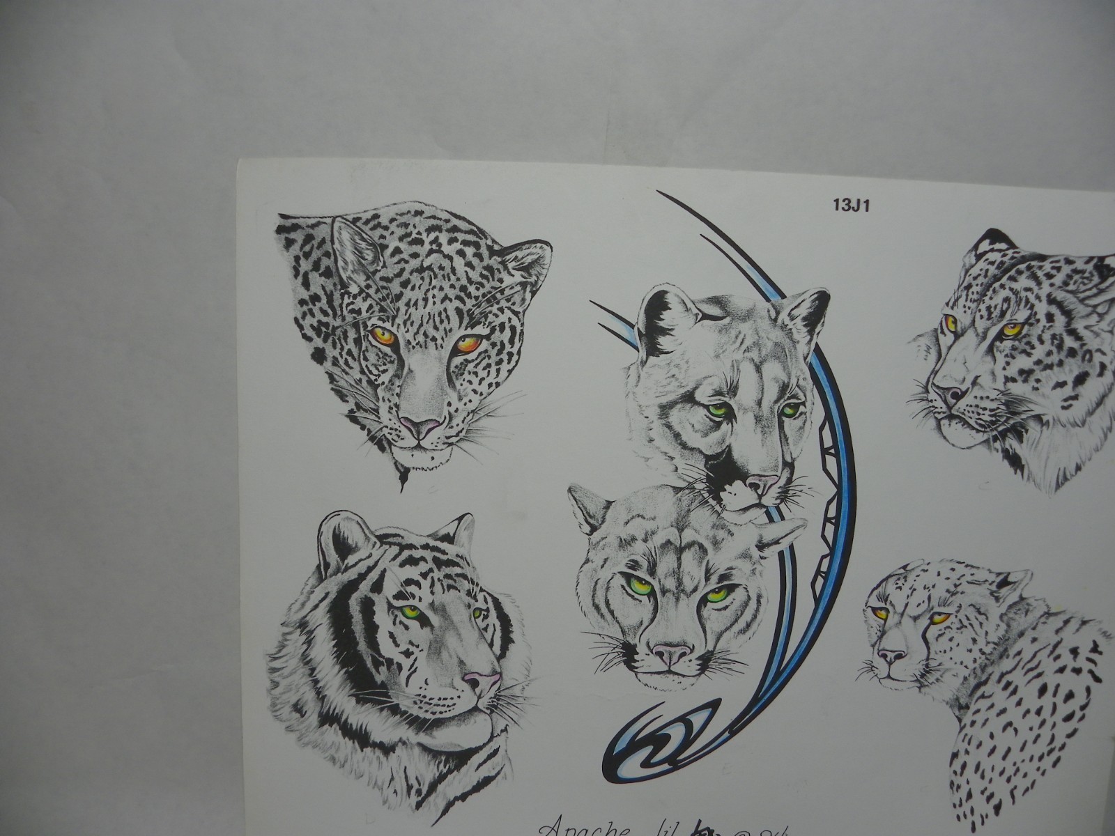 Vintage 1994 Apache Jil Big cats tattoo flash. Great condition.