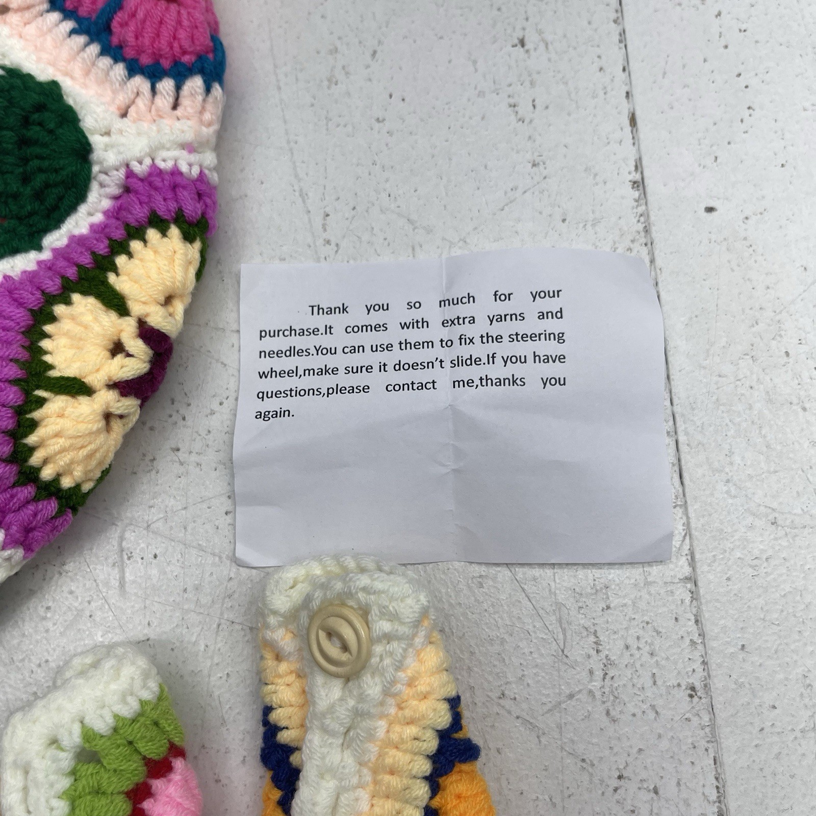 4 Piece Granny Square Floral Crochet Steering Wheel Seatbelt Mirror Dangle Cover
