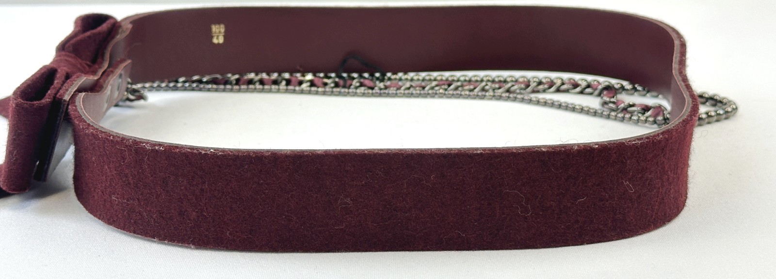 как выглядит NWT CHANEL Bow Chain Belt 100/40 Burgundy Felt Gunmetal Autumn 2002 Vintage фото