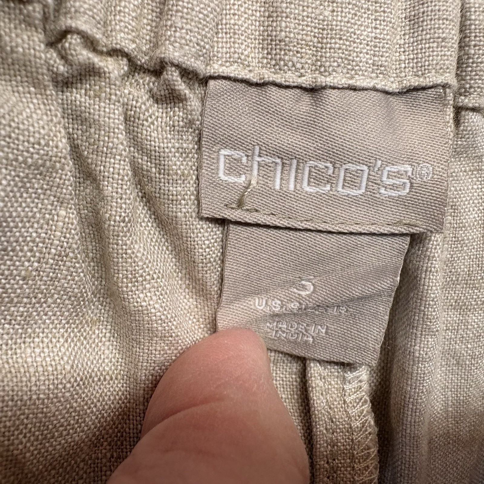 Chicos Pants Size 3 Size 16 Beige Linen Wide Leg Button Hem Crop Lagenlook Beach