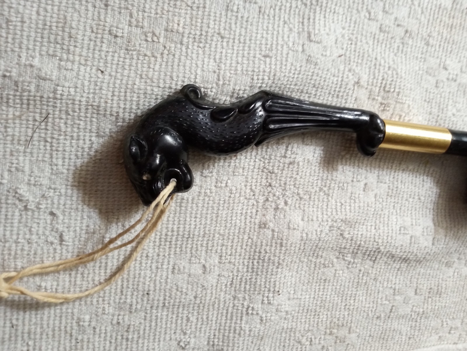 как выглядит Vintage Clothes Brush Black Panther Handle Gold Accent Hanging Loop 11" фото