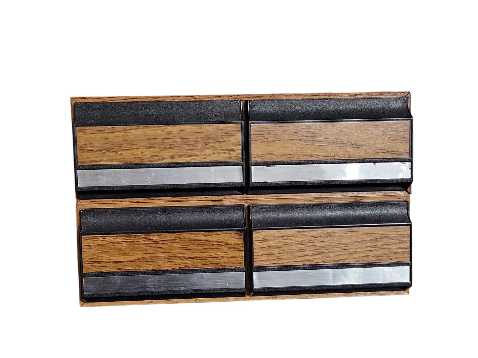 как выглядит VTG 2 drawer VHS Tape Storage Case Holds 24 Each Tapes Wood Grain Lot Of 2 фото