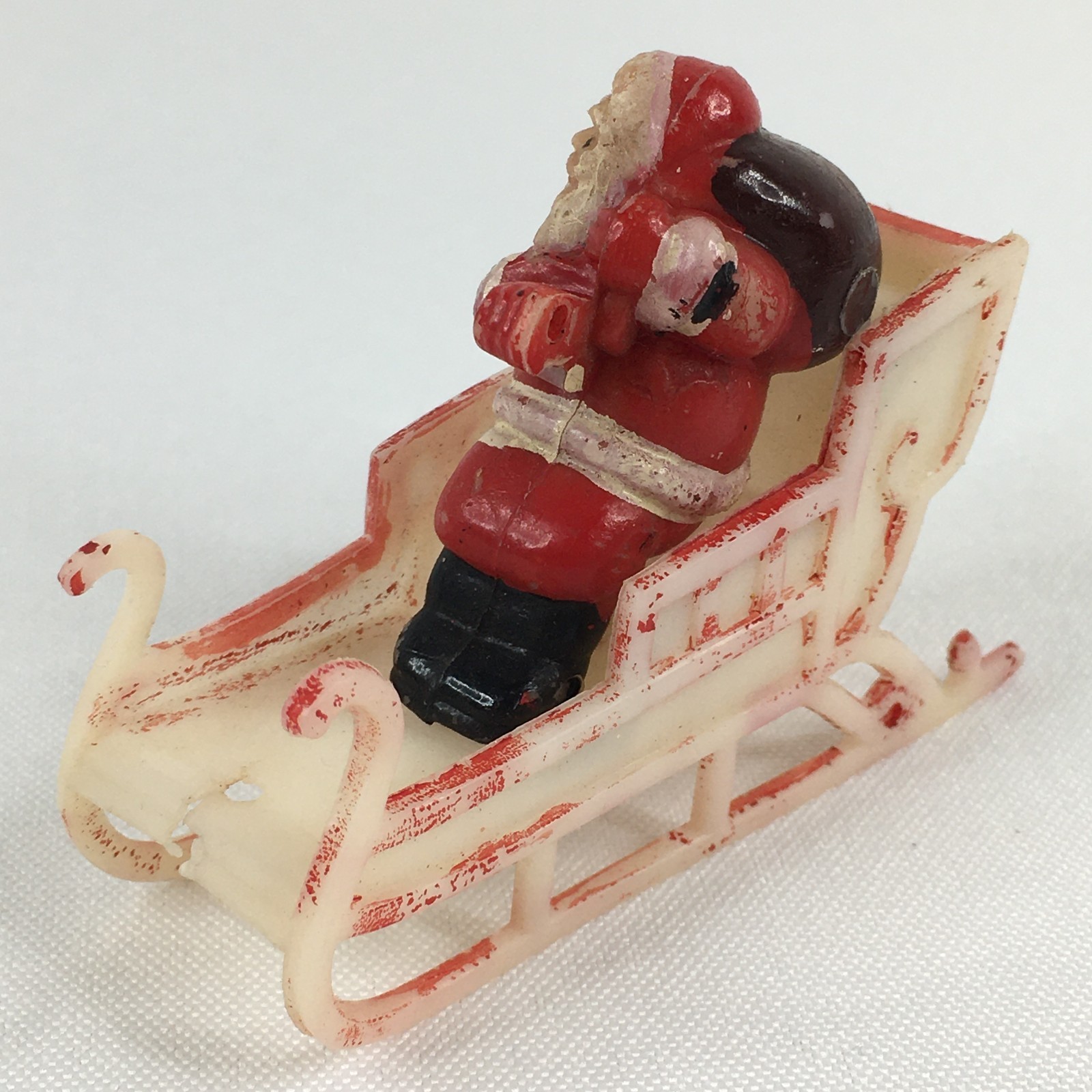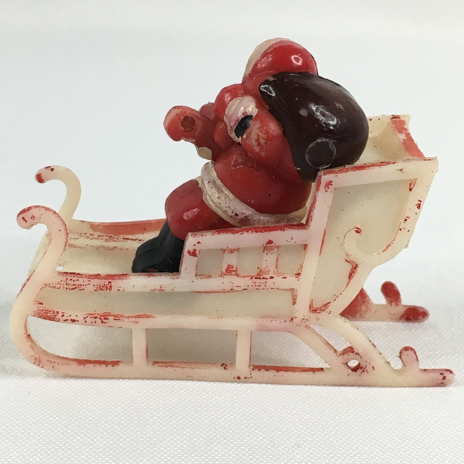• Vintage Celluloid Santa with Sack on Sleigh Mini Christmas Decor Hong Kong No 33