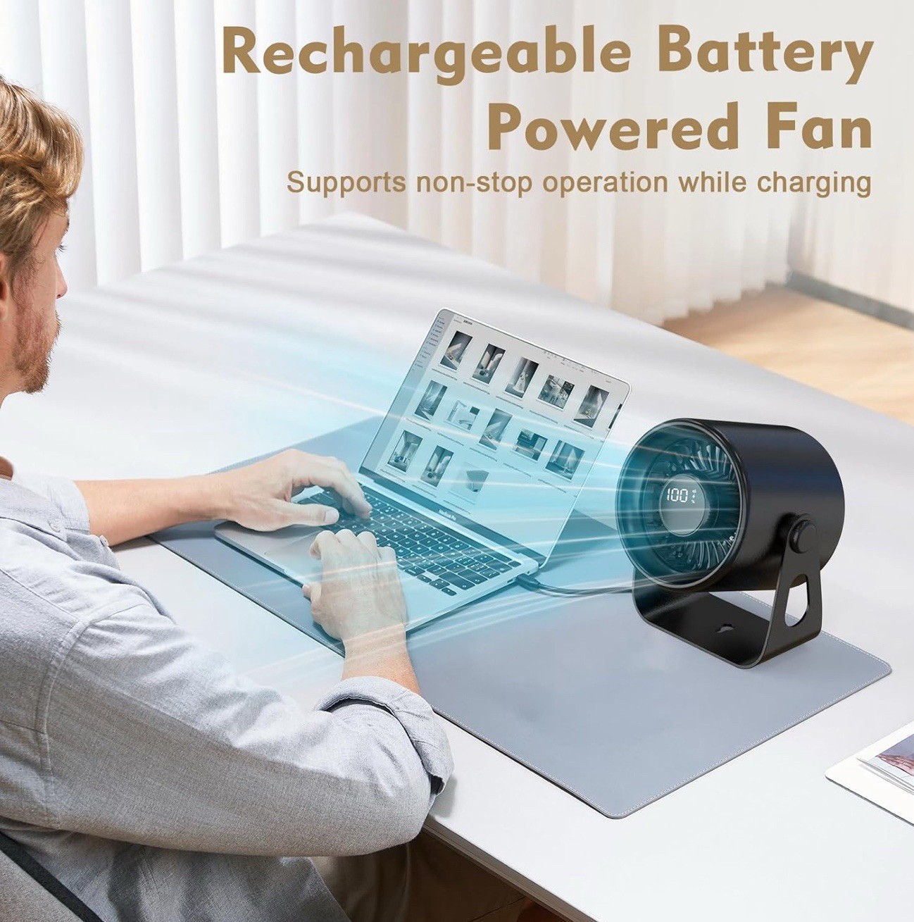 Desk Fans Small Quiet, 100 Speeds Rechargeable Fan Portable, 4000mAh Battery
