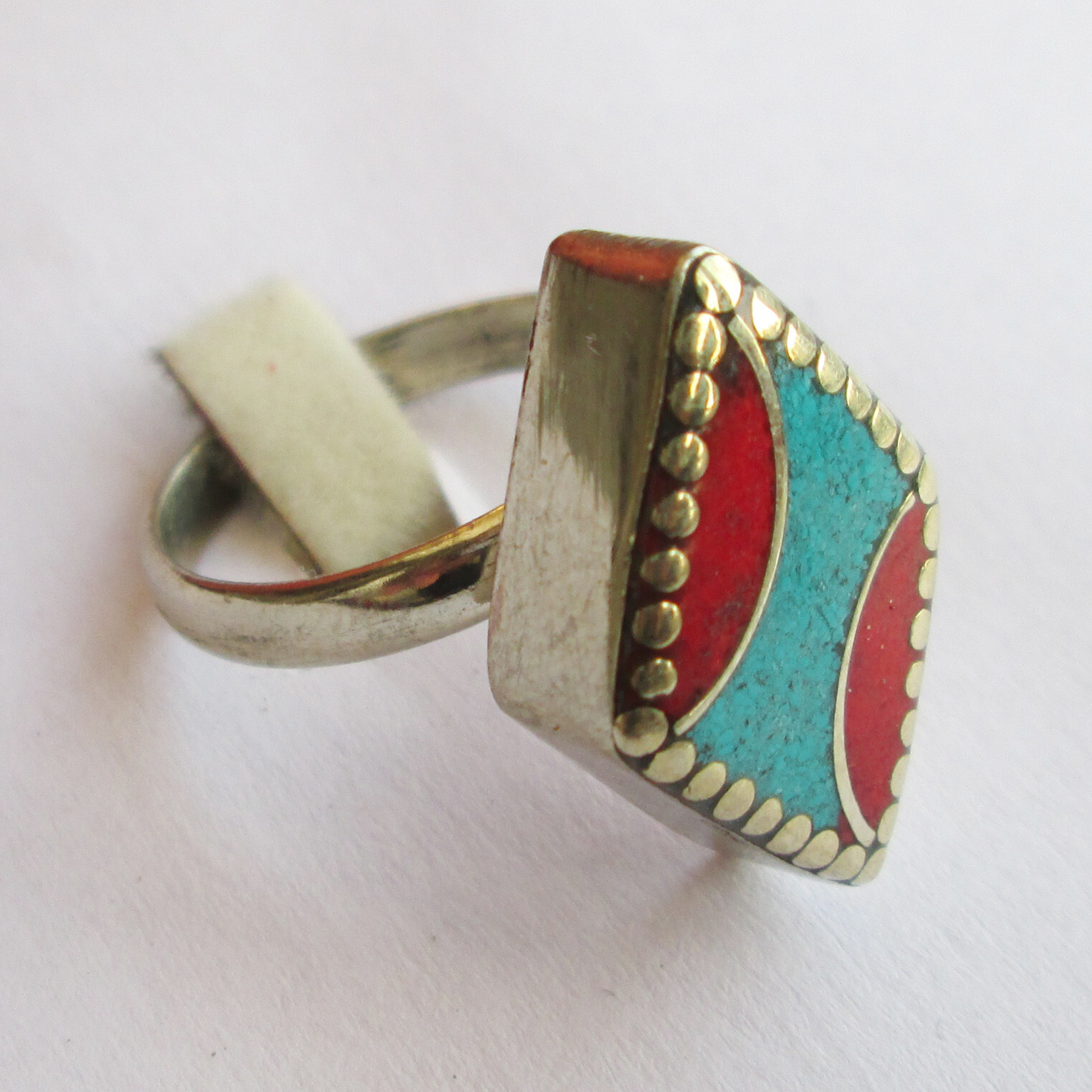 как выглядит Tibetan Silver Turquoise Red Coral Original Jewelry Adjustable Unisex Ring R47 фото