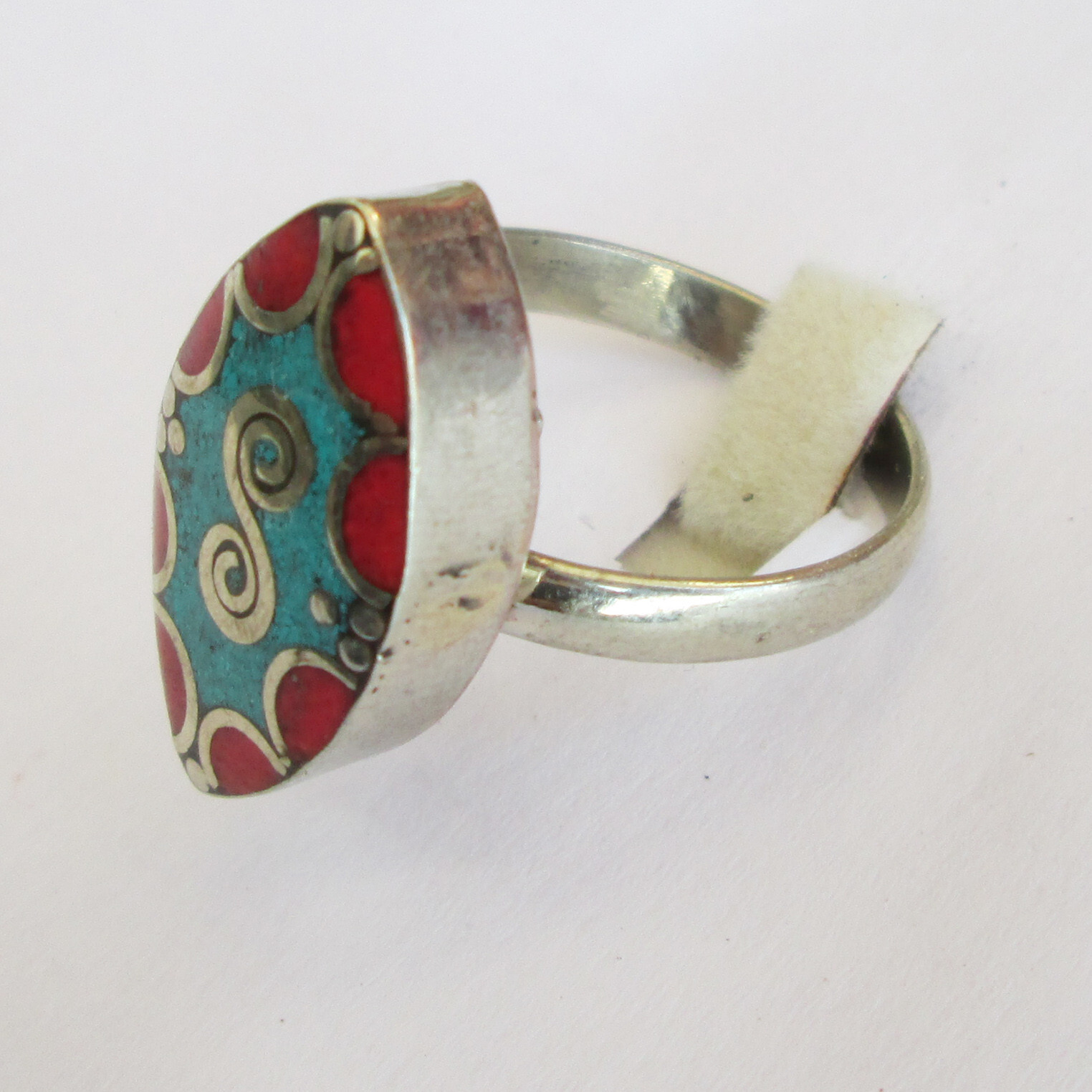как выглядит Tibetan Silver Turquoise Red Coral Original Jewelry Adjustable Unisex Ring R24 фото