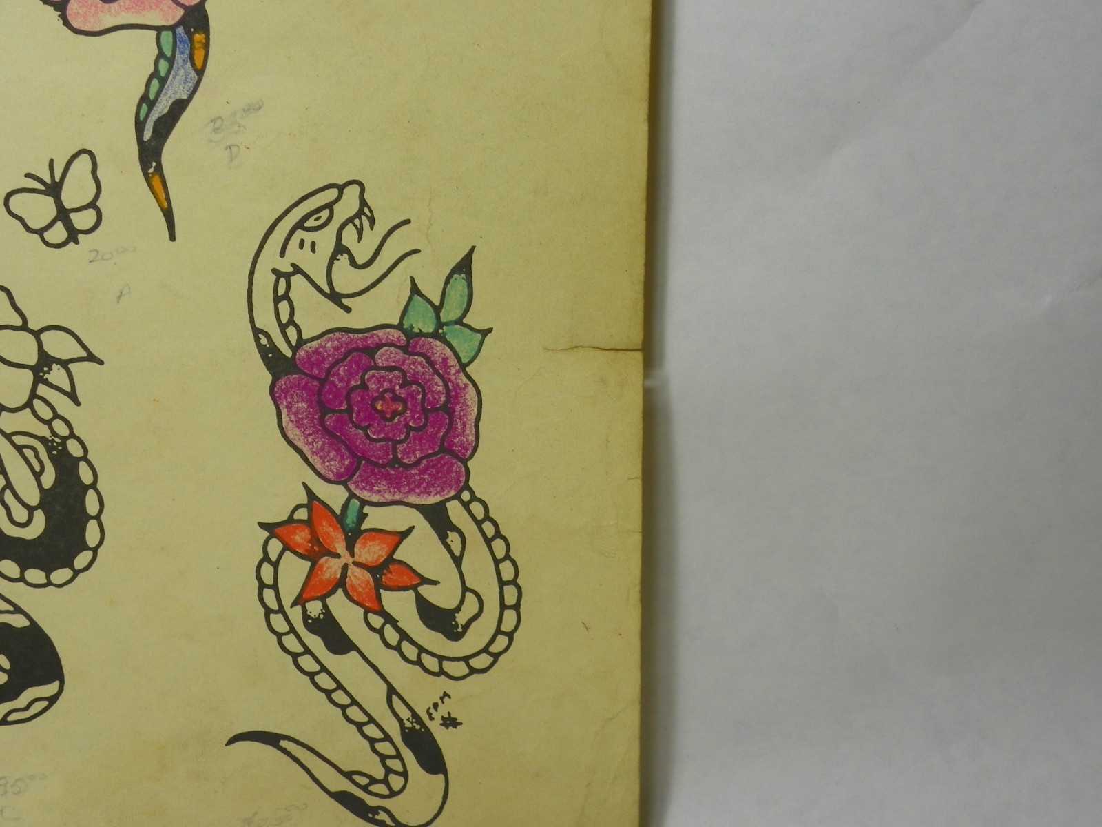 как выглядит Vintage 1976 Spaulding and Rogers 171 "Snakes" tattoo flash. In fair condition. фото