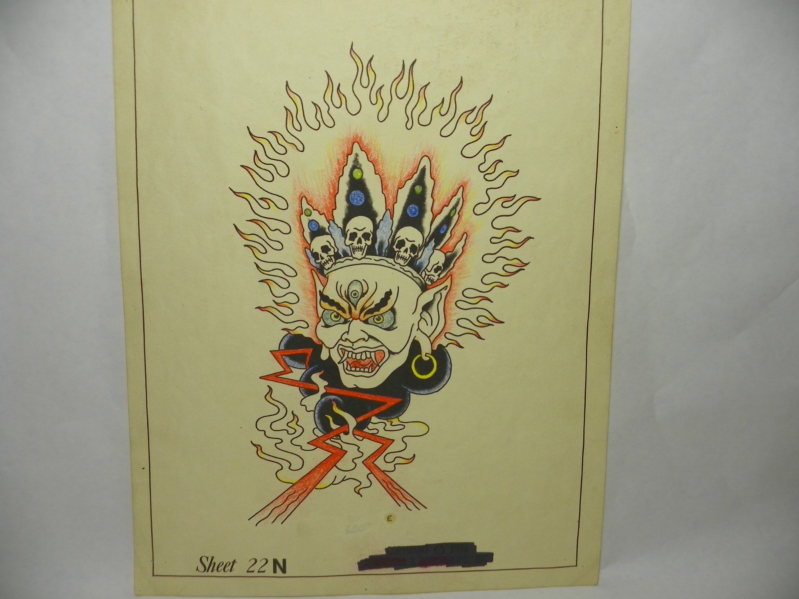 Vintage 1976 Don Nolan Demon tattoo flash. Fair condition.