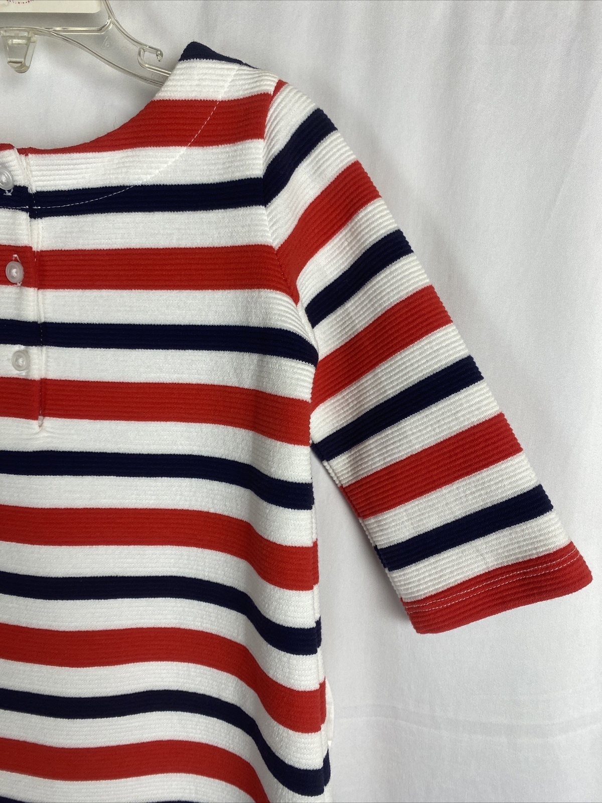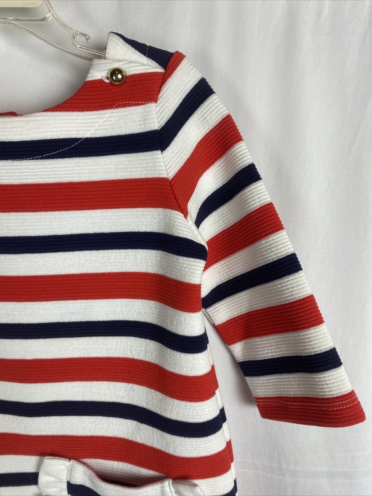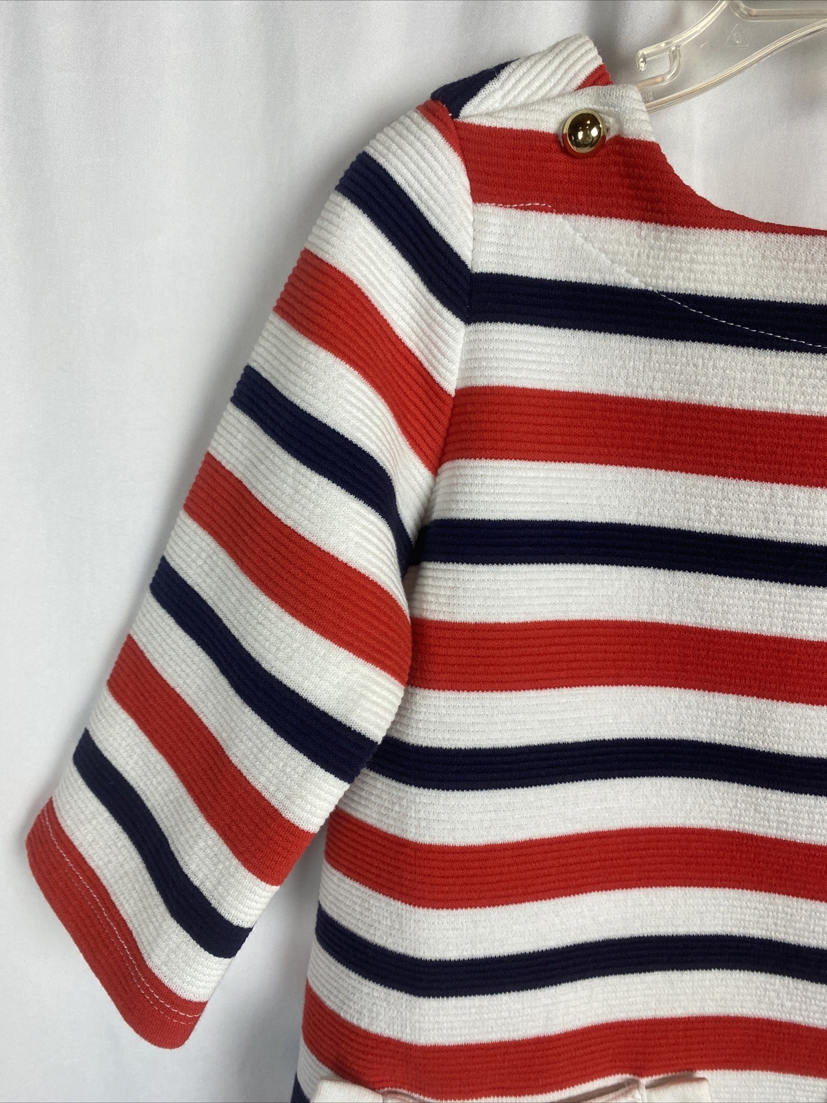 как выглядит Janie and Jack Striped Knit Dress Sz 3 3T 3Y Red White Blue Gold Button Detail фото