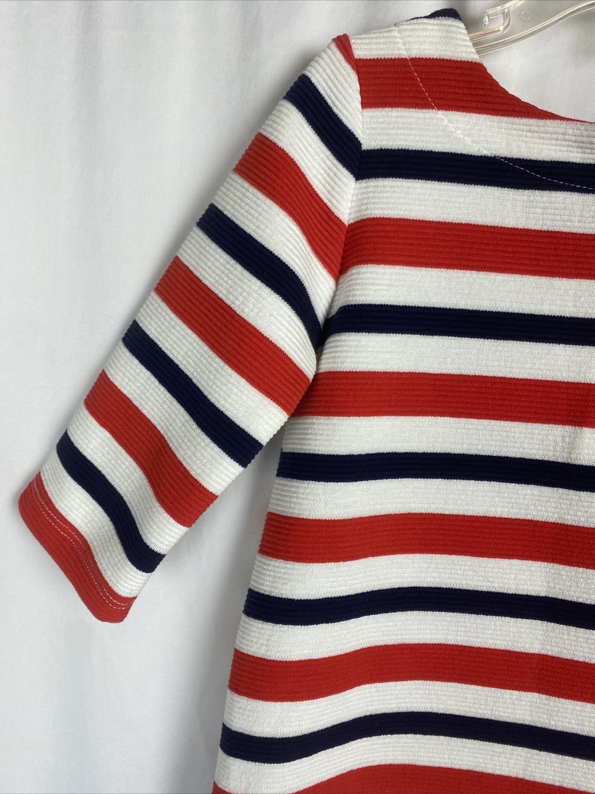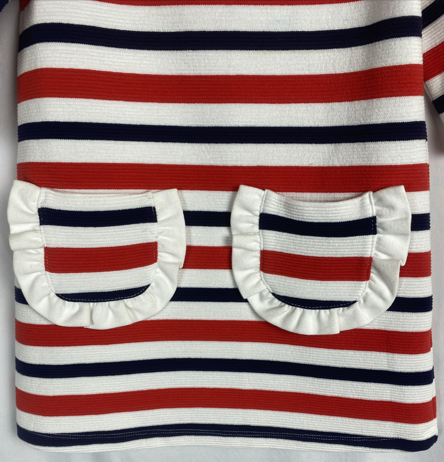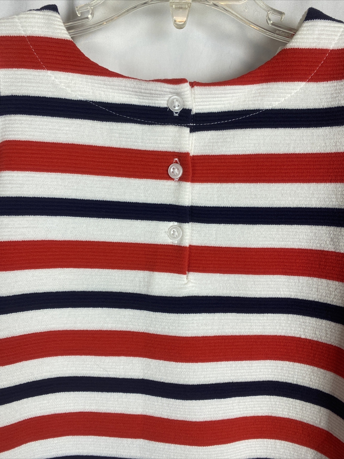 как выглядит Janie and Jack Striped Knit Dress Sz 3 3T 3Y Red White Blue Gold Button Detail фото