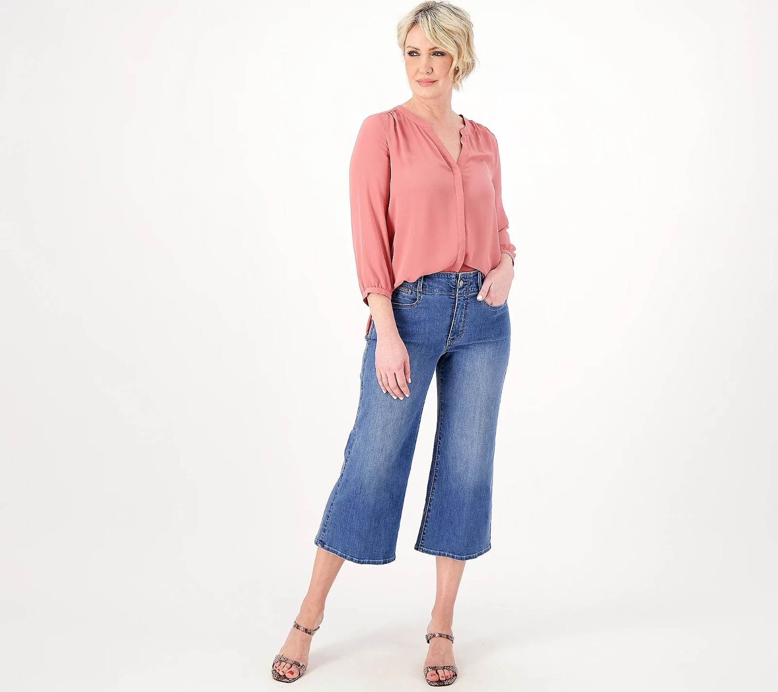 NYDJ Cool Embrace Wide Leg Denim Crop Jeans - Compass Regular Size 8 A575282