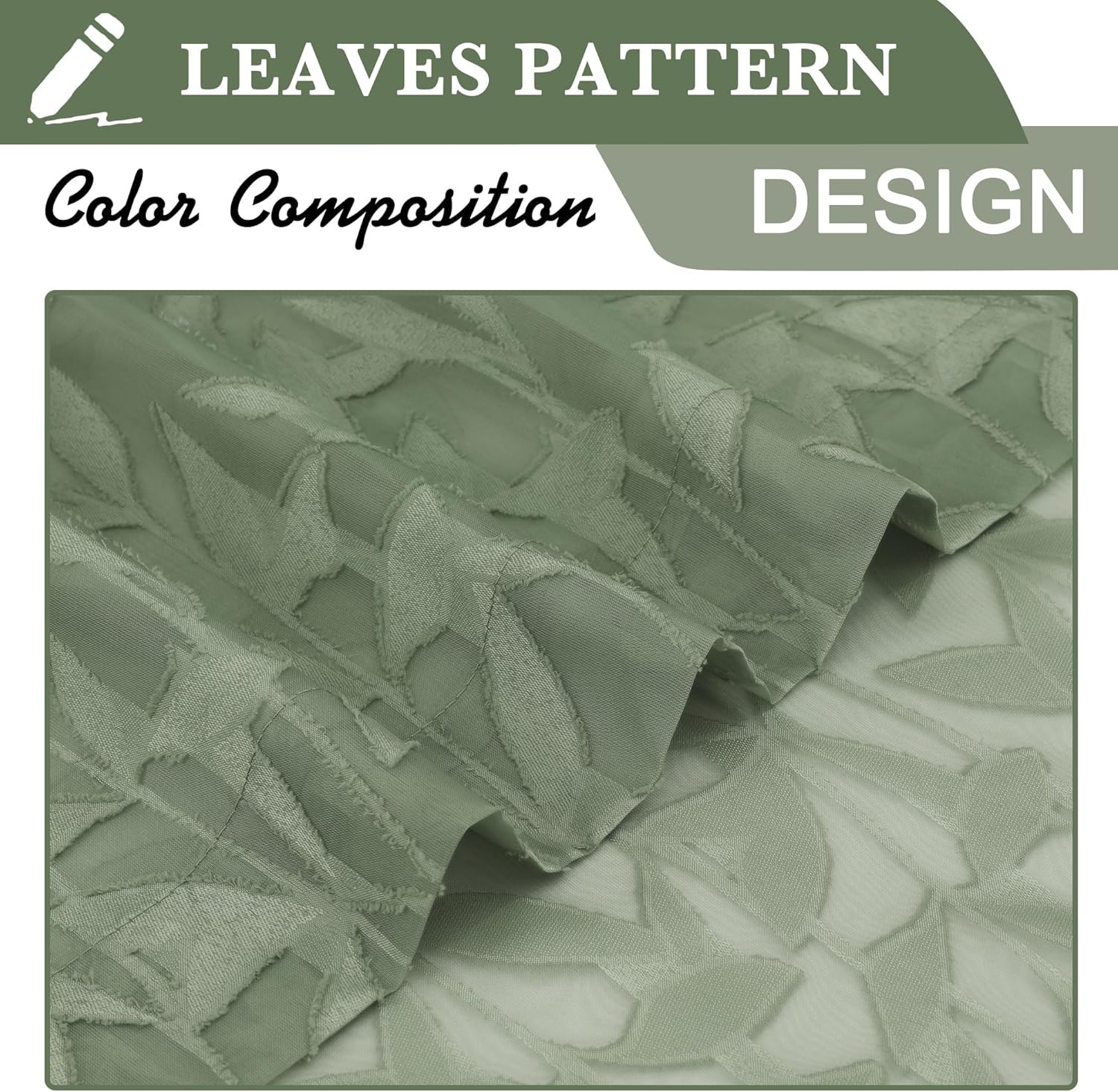 как выглядит Leia 14 Inch Sage Valance for Window Green Sheer Curtains 2 PCS, Jacquard Textur фото