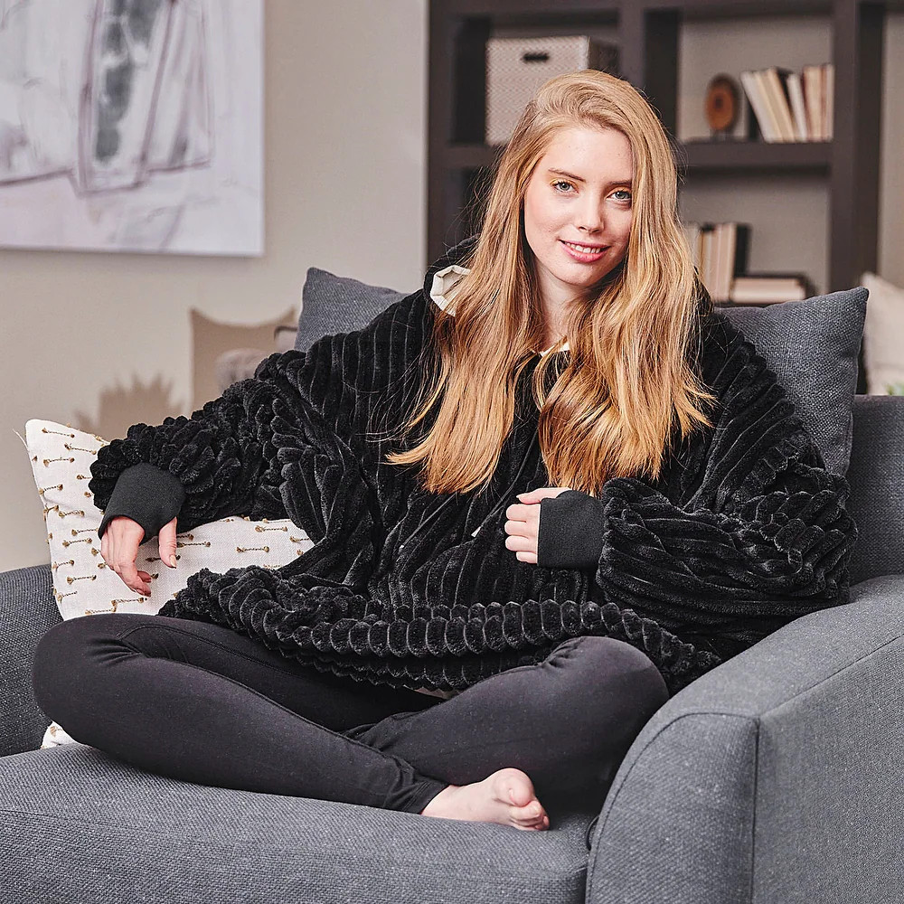 Wearable Blanket Reversible Oversized Warm Blanket Hoodie Sweatshirt Adult Size
