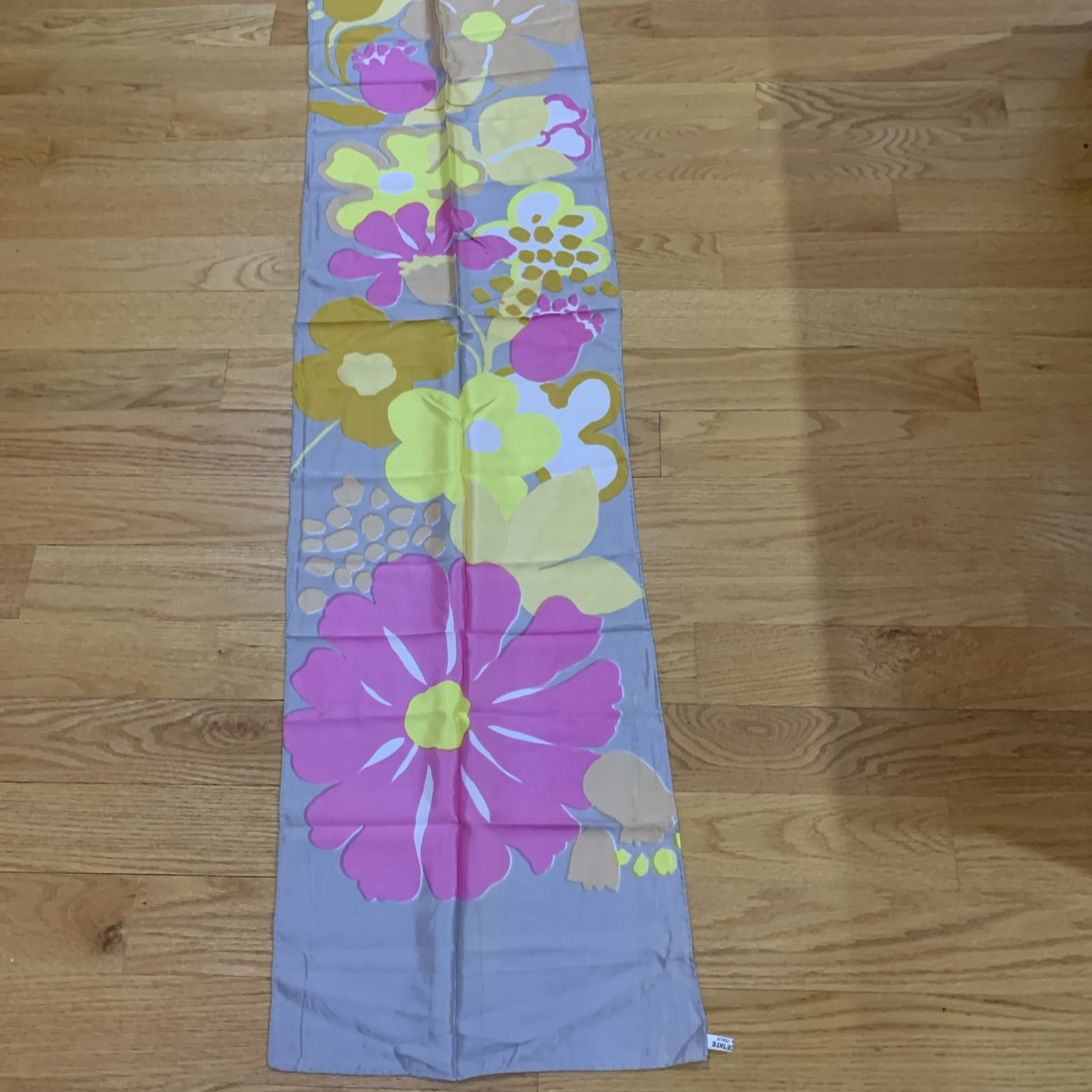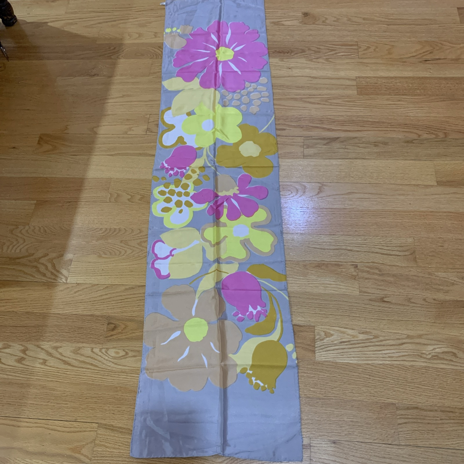 как выглядит VINTAGE LARGE FLORAL OBLONG ACETATE SCARF HAND ROLLED EDGE 14" X 61" фото