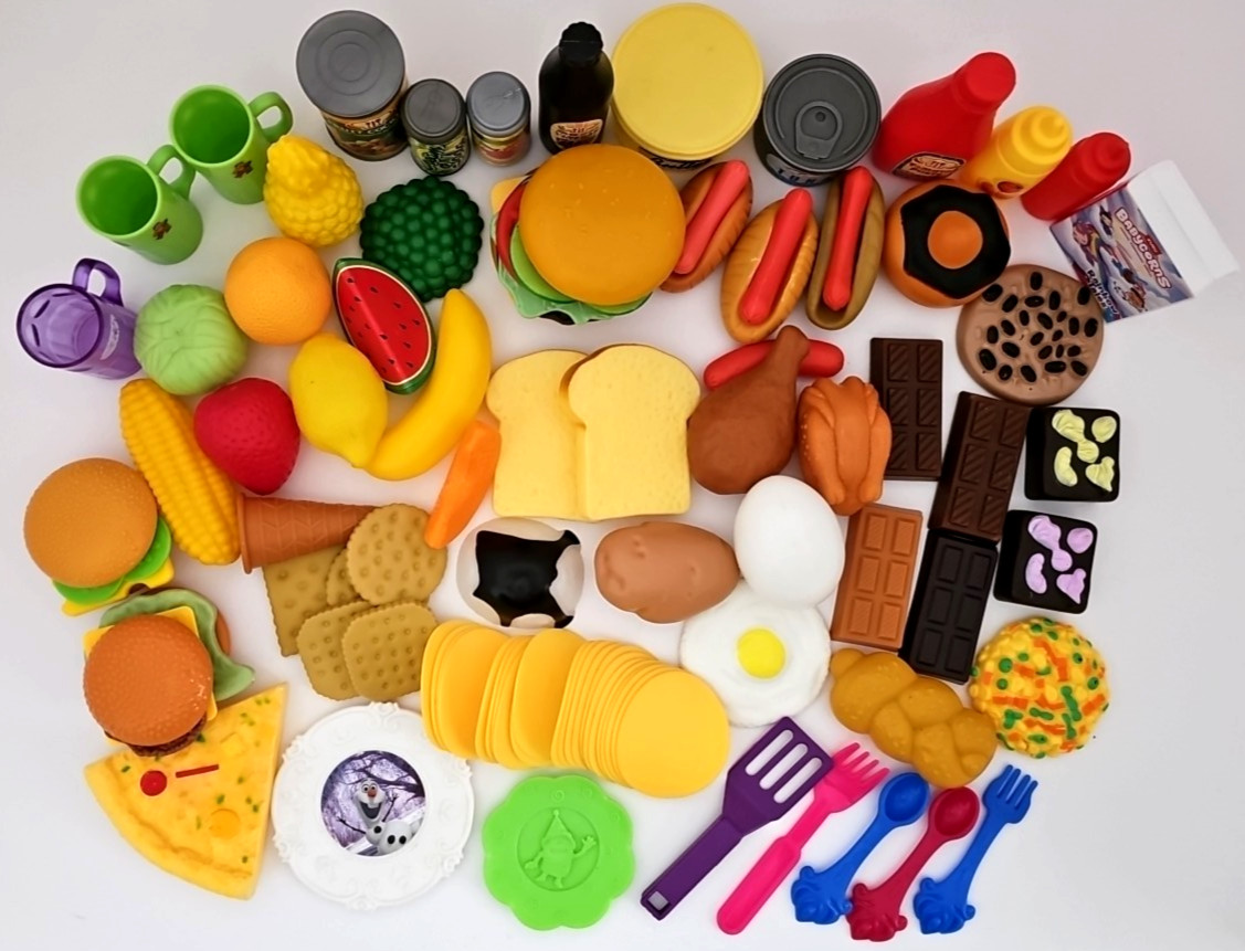 Pretend Food Kids Toy Plastic Fruit Burger Hot Dogs Sweets Chips Soda Condiments