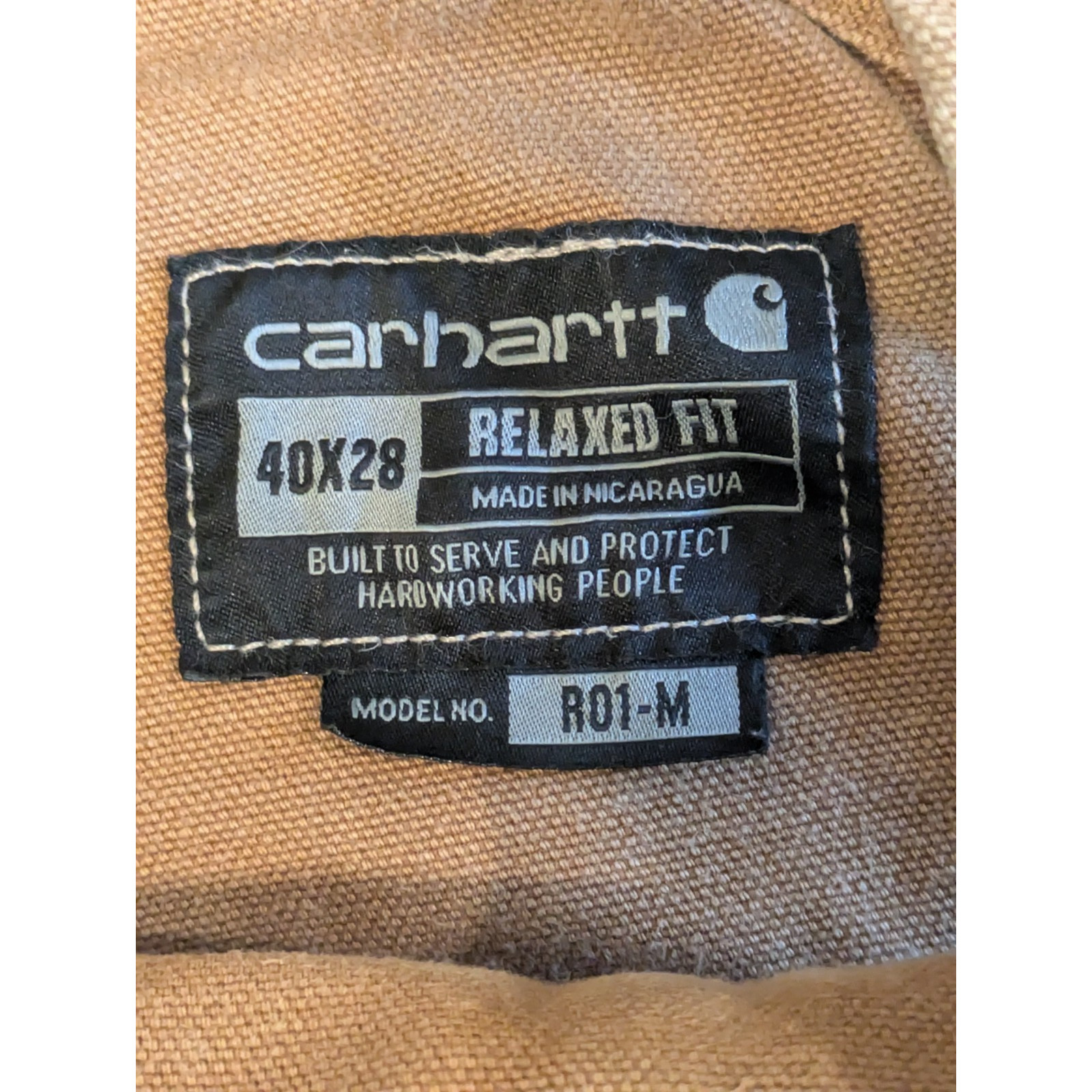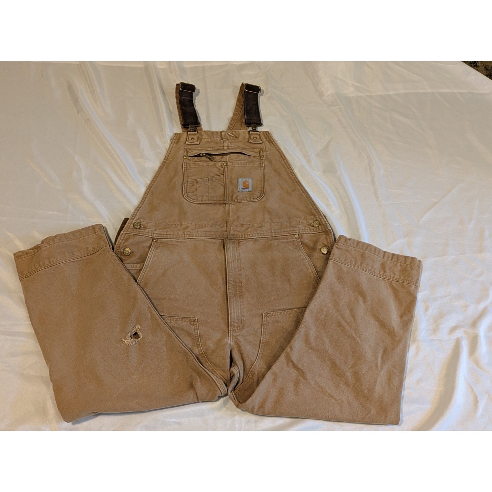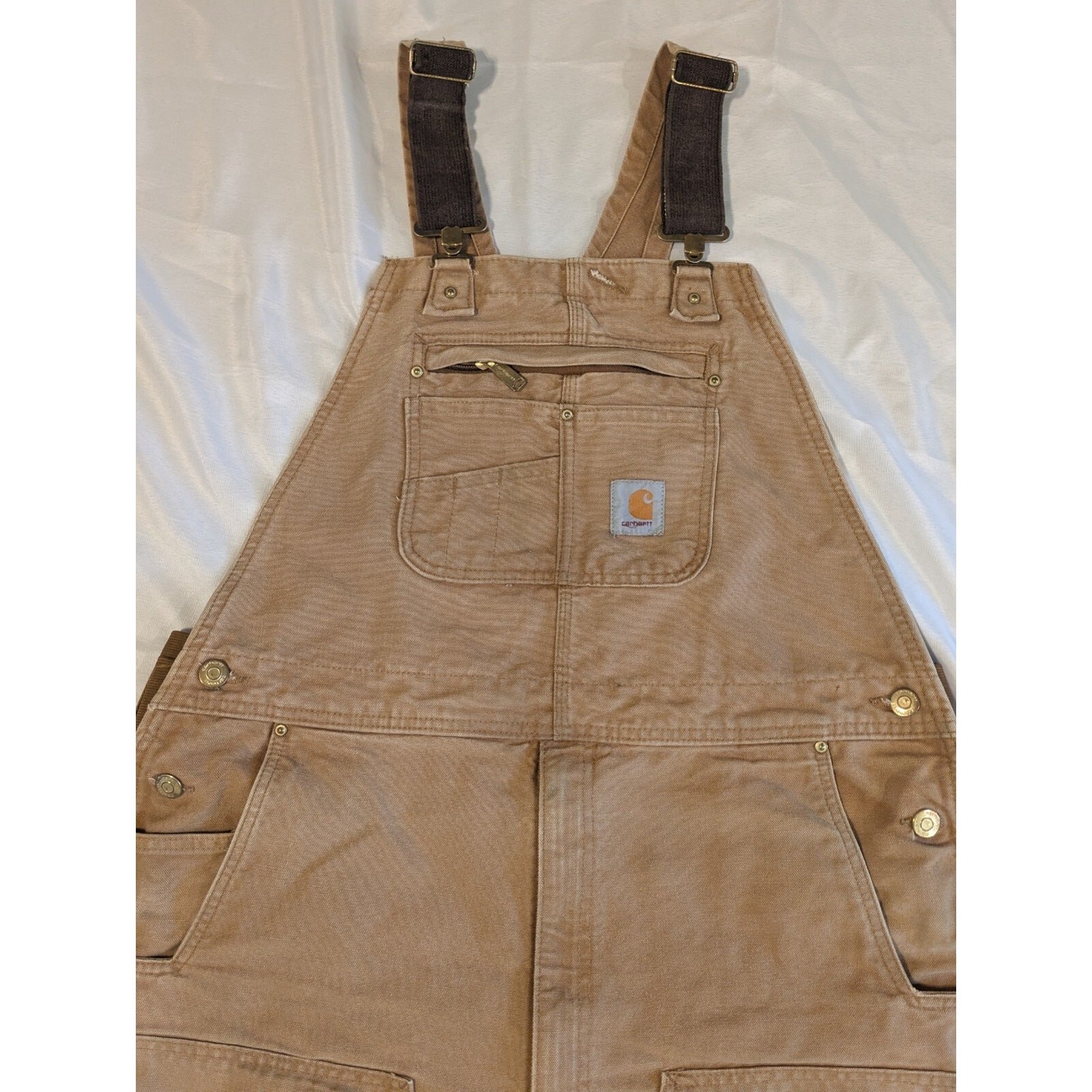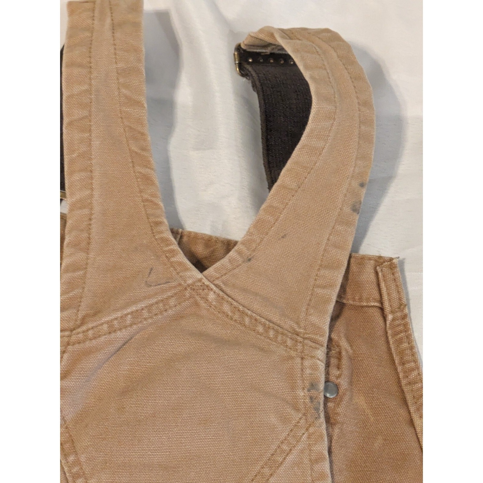 Carhartt Duck Bib Overalls Mens 40 x 28 Brown Unlined Double Knee Destressed