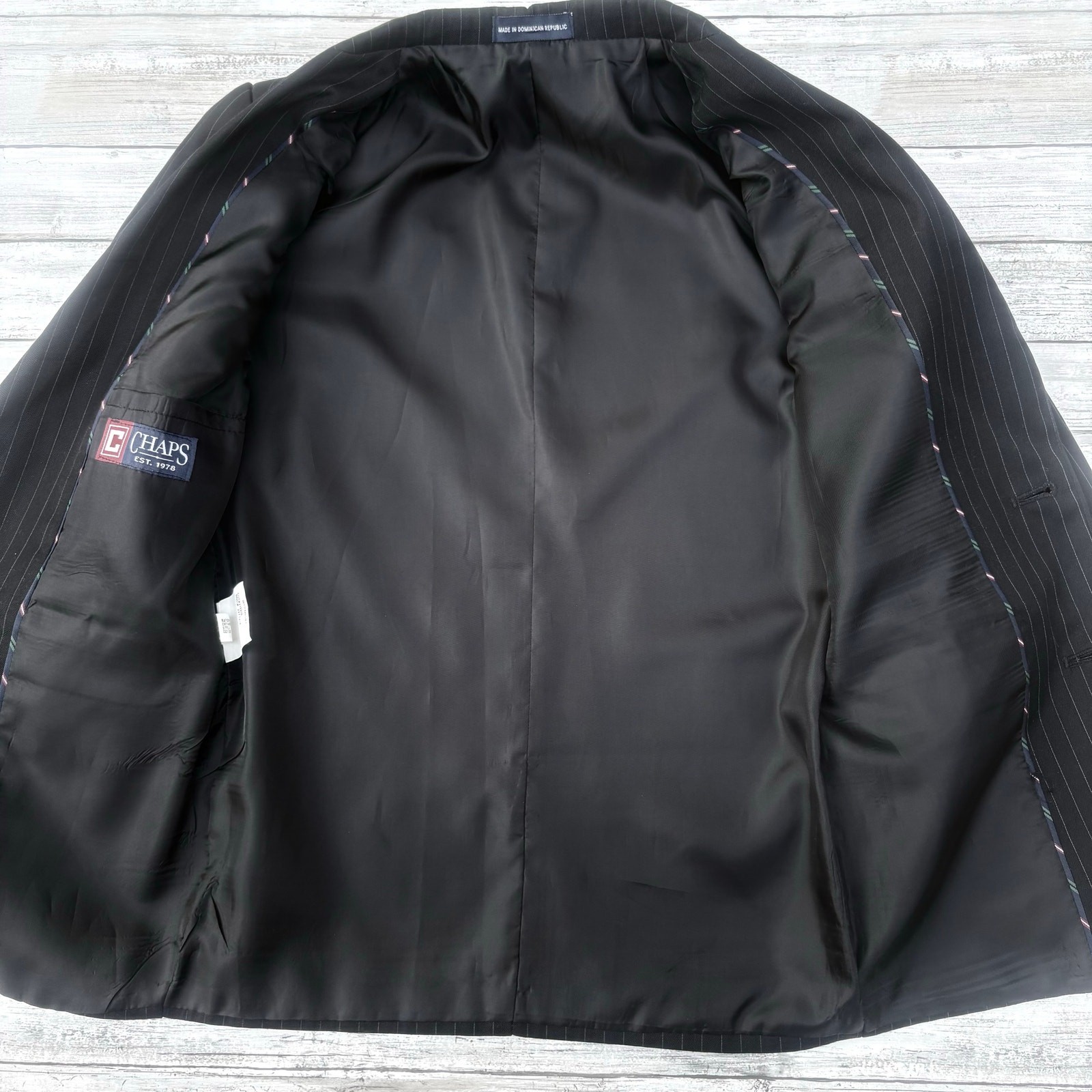 как выглядит Chaps Blazer Boys Kids Sz 10 Regular Black Pinstripe Two Button Single Breasted фото