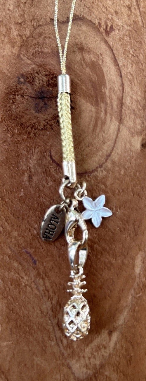 Island Reflections Hawaii Gold Pineapple Phone Charm Good Luck NEW