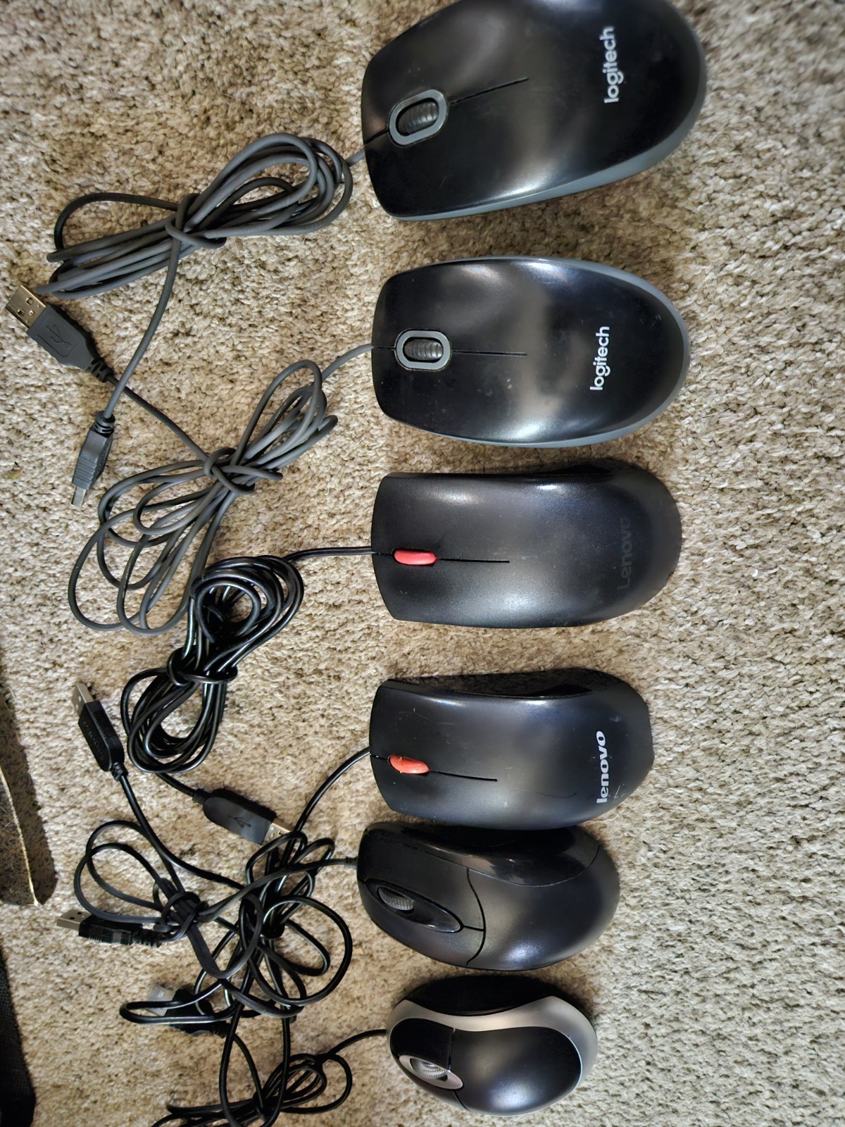Lot of 6 Logitech, Microsoft, etc. USB Wired Optical Wheel Mouse