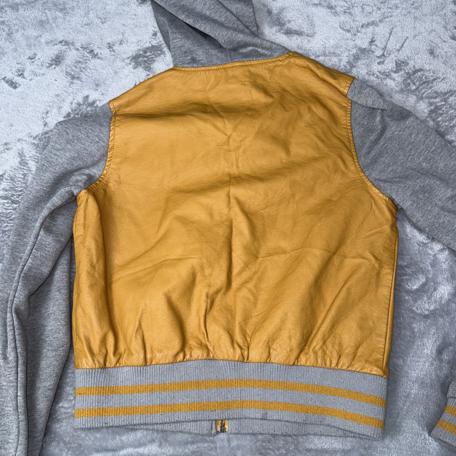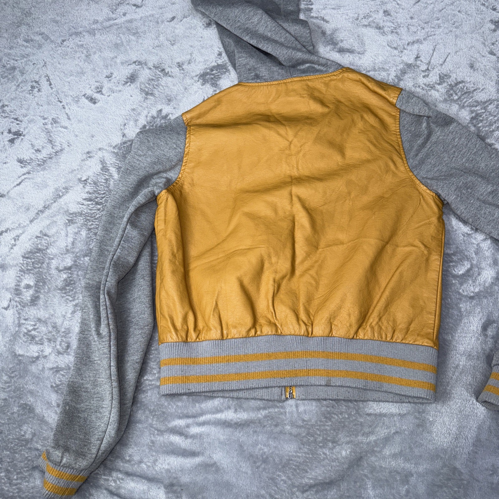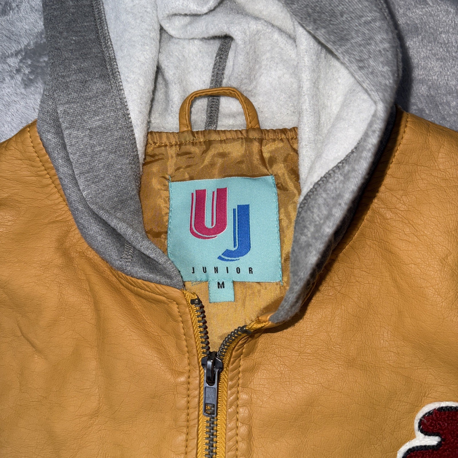 UJ Junior Mustard Yellow Kids Hooded Varsity Jacket Size Medium