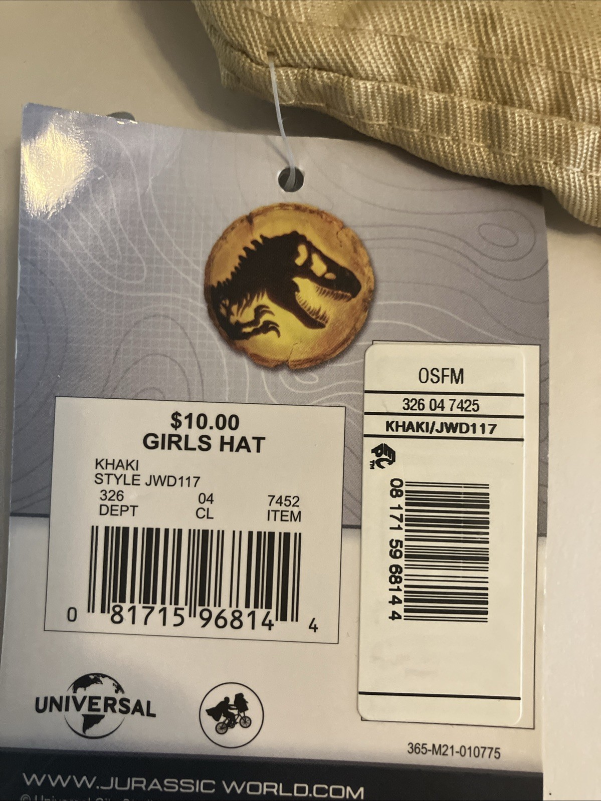 JURASSIC WORLD Kids Youth Size OSFM Wide Brim Khaki Bucket Hat C699
