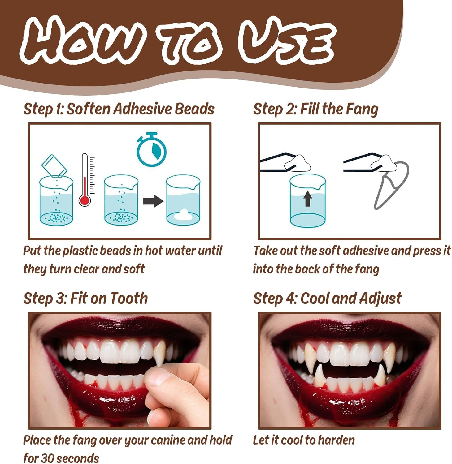 Professional Vampire Fangs for Cosplay - 12 Pairs in 4 Sizes with Pellets