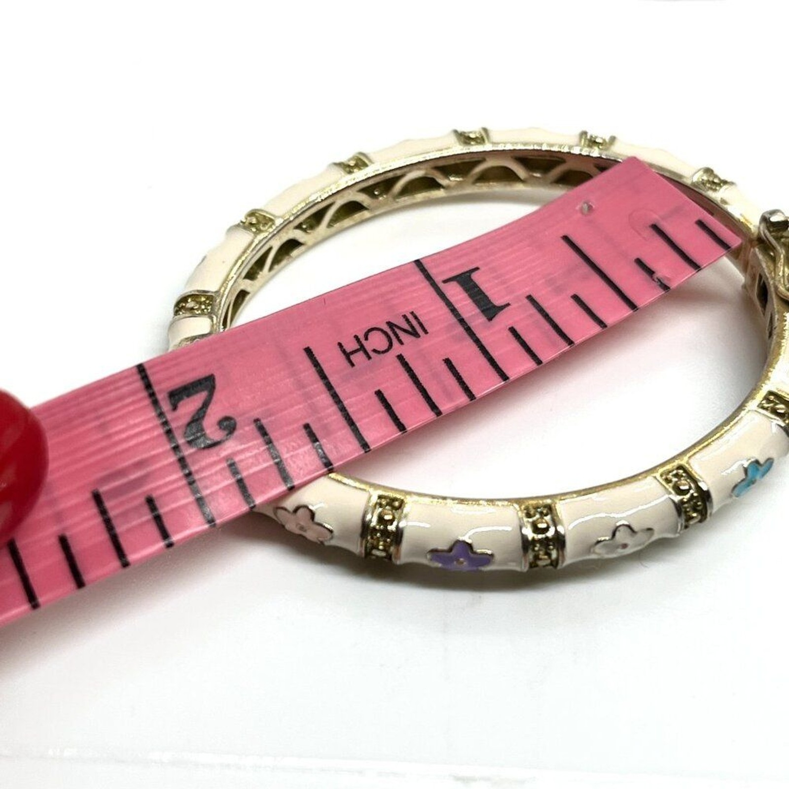 как выглядит VINTAGE CHILD S ENAMEL FLOWER BANGLE BRACELET CREAM PASTEL GIRLS SIZE фото