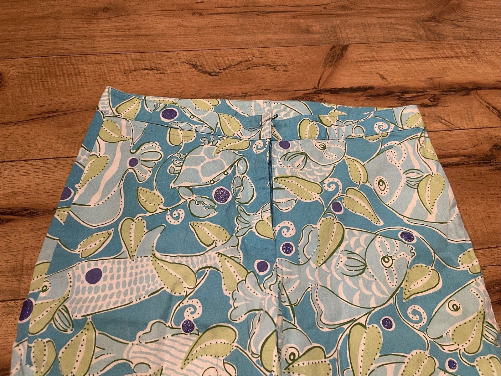 как выглядит Vintage Lilly Pulitzer Pants Atlantis Fish Blue Tropical Missing Button Size 2 фото