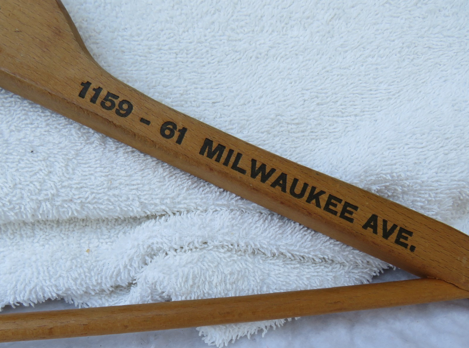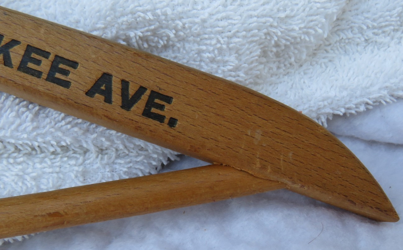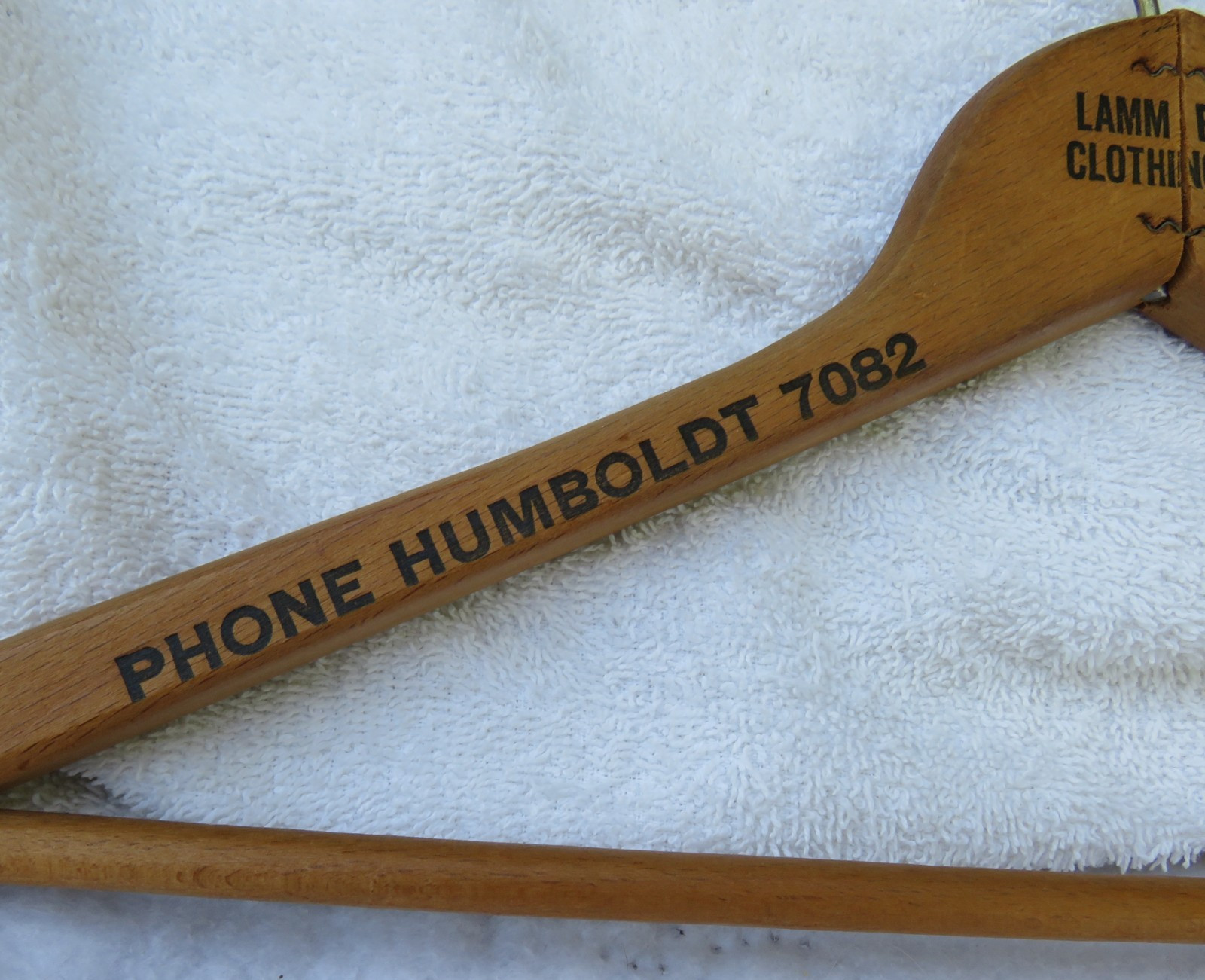 Vintage-Lamm Bros Clothing-Wood Hanger Old Phone Humboldt 7082 - 16.75 x 9