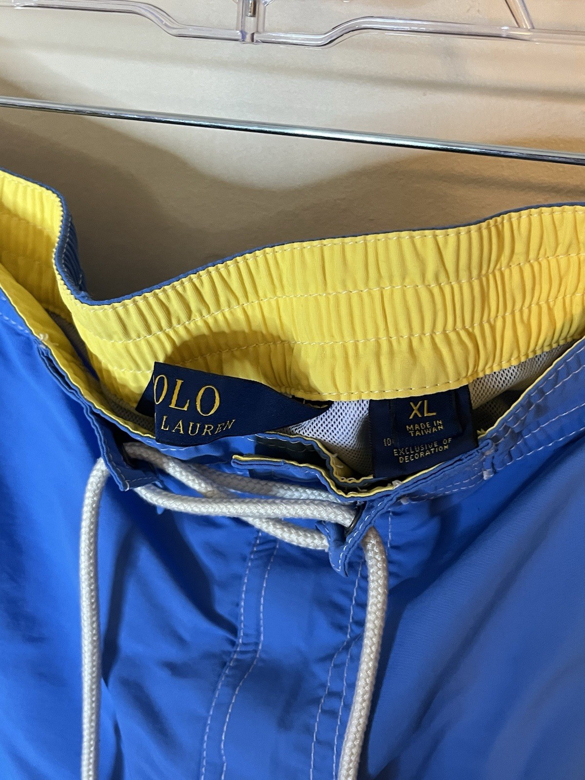 как выглядит Vintage Polo Ralph Lauren Swim Trunks Mens XL Blue Mesh Lined Yellow Pony Used фото