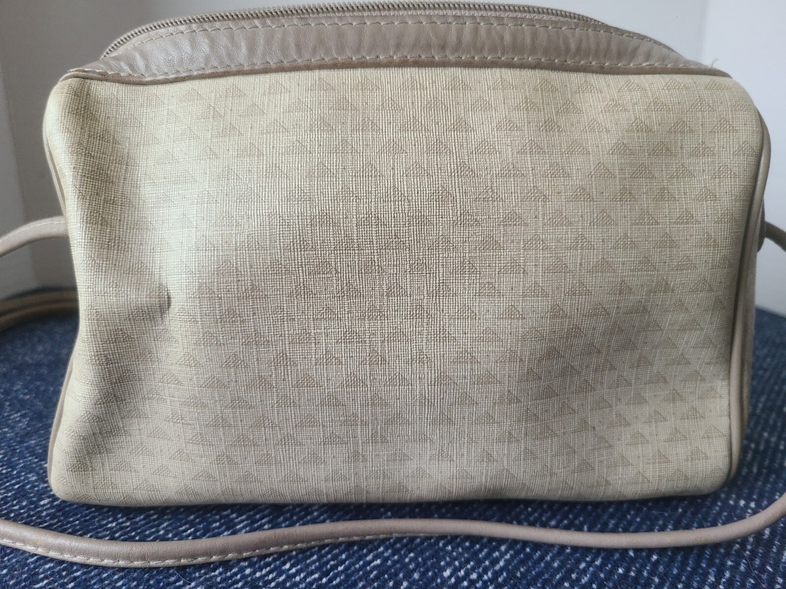 как выглядит Liz Claiborne Purse Handbag Gray/Taupe Triangle Logo Leather Bag X Body 80s 1984 фото