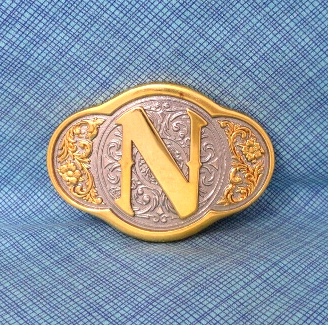 N Belt Buckle Western Initial N Monogram GP SP Vtg Award Design Medals .SHY019