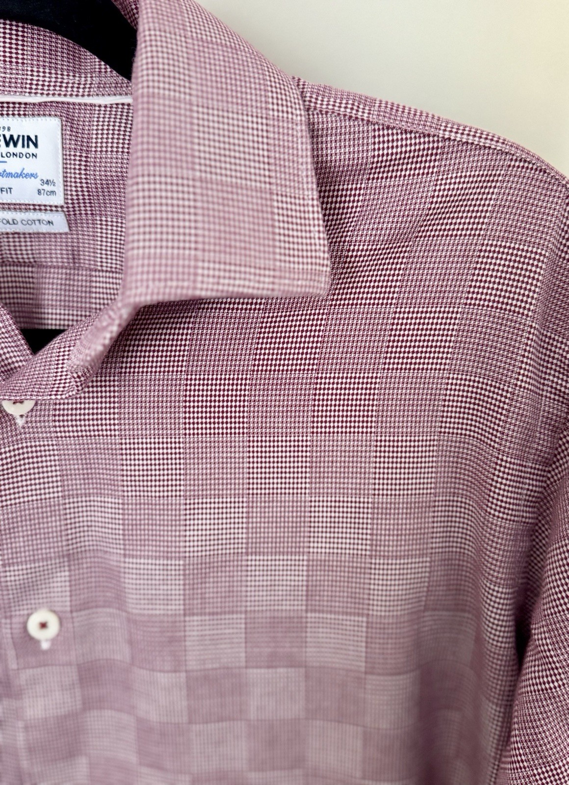 как выглядит T.M Lewin Men s Slim Fit Long Sleeve Shirt Size 15.5 34.5 Deep Red Maroon фото