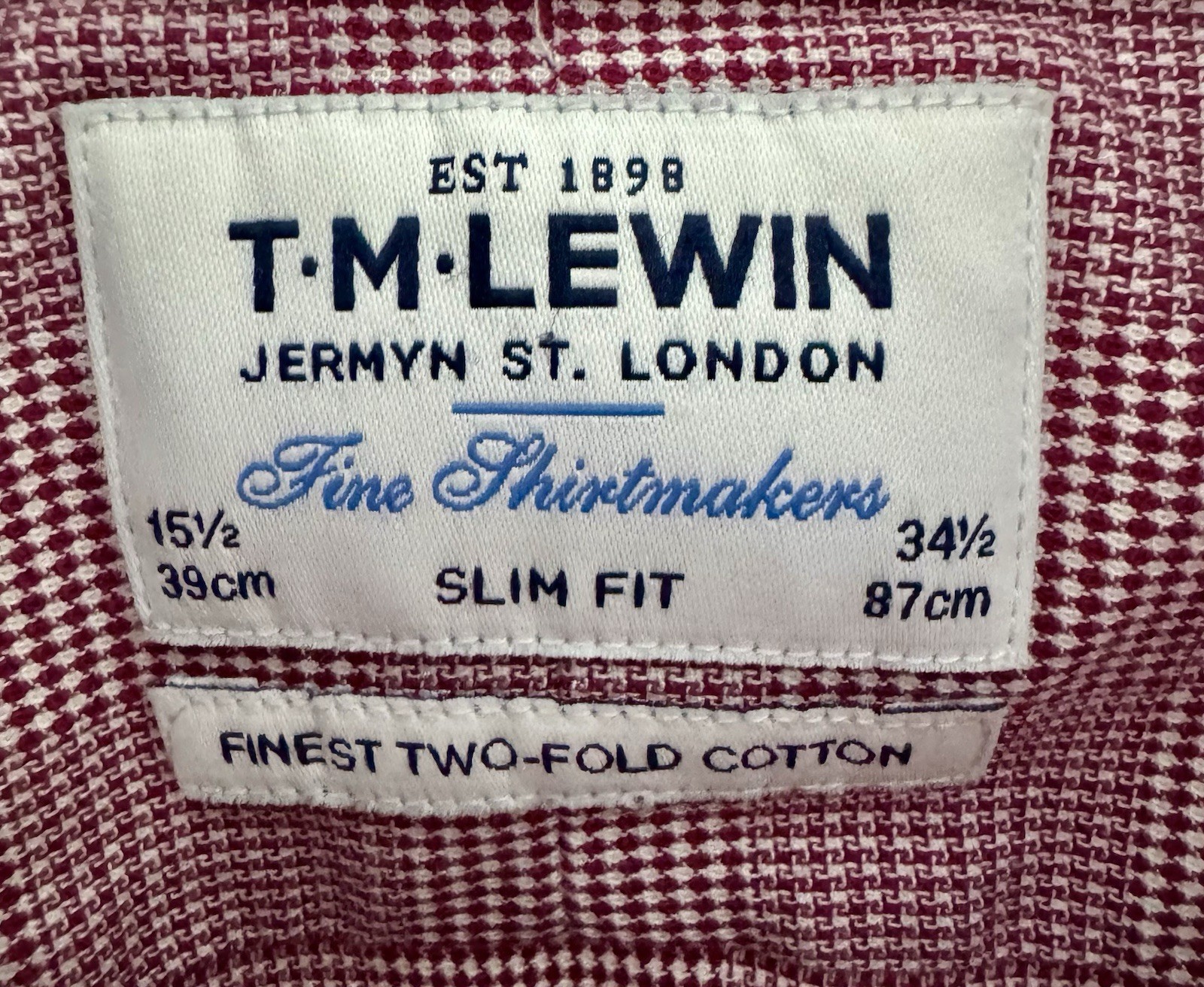 T.M Lewin Men s Slim Fit Long Sleeve Shirt Size 15.5 34.5 Deep Red Maroon