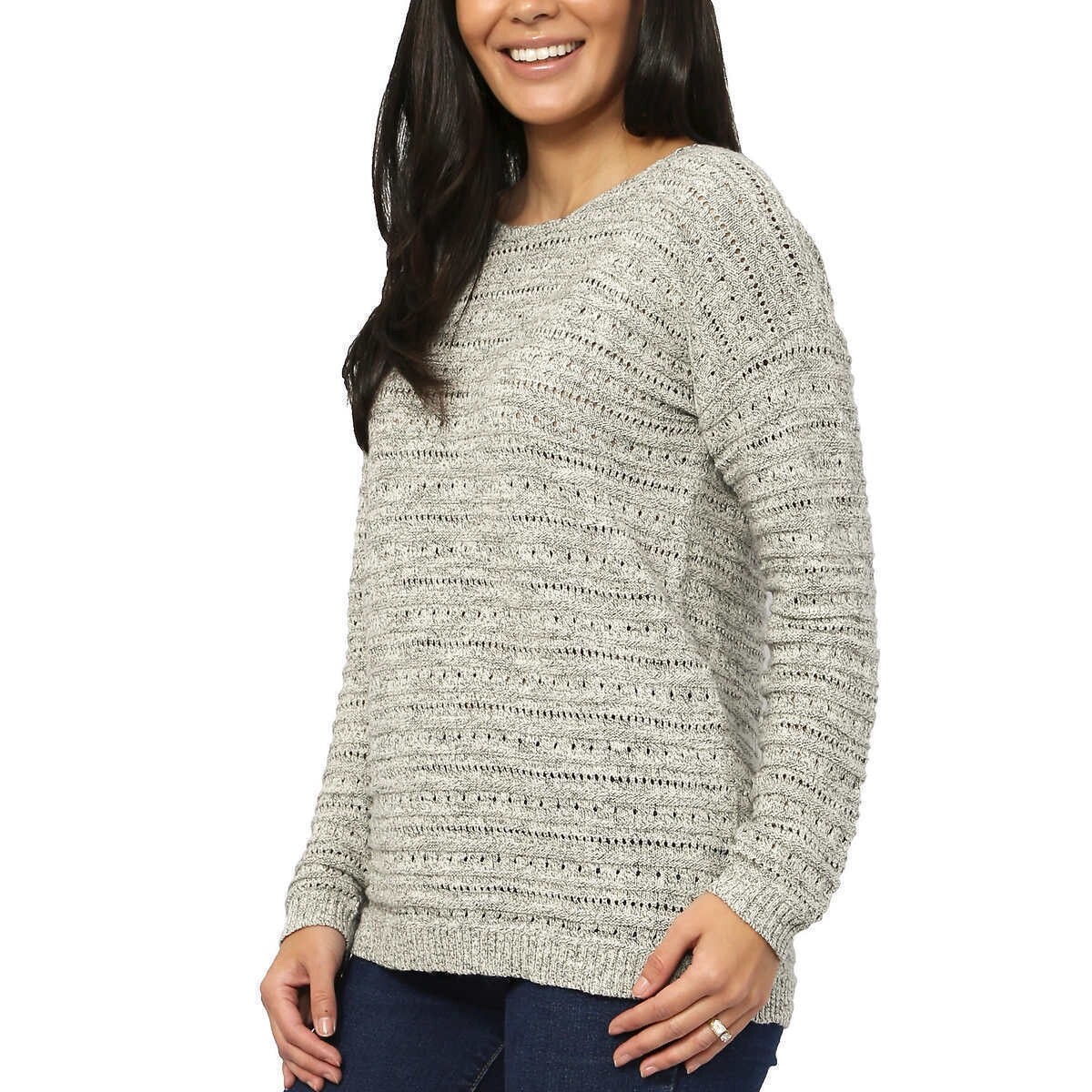 как выглядит Leo Nicole Womens Pointelle Sweater, Opus Grey, Medium фото