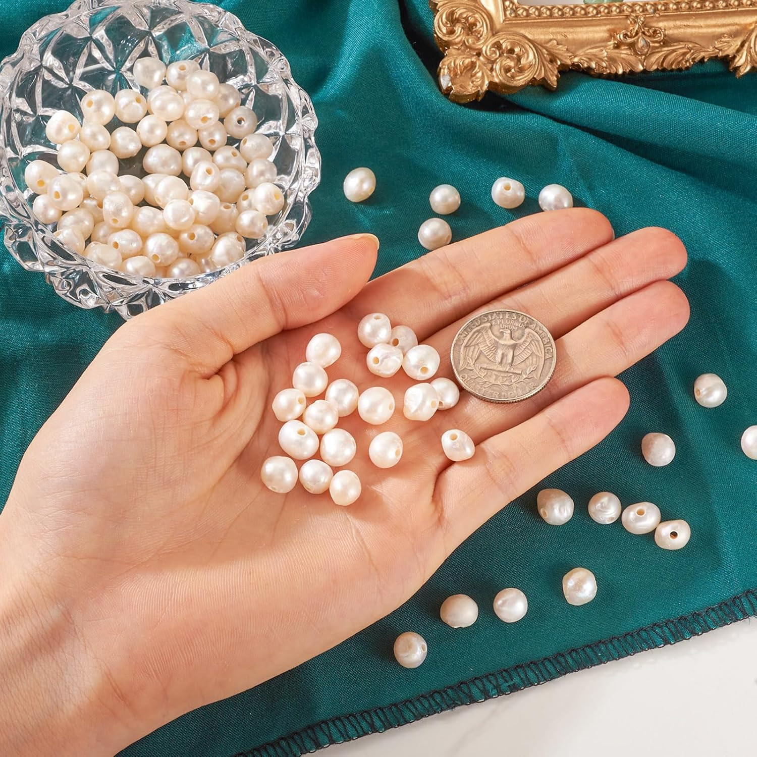 100Pcs 7-8Mm Natural Freshwater Pearl Beads 1.6Mm Big Large Hole Irregular Potat